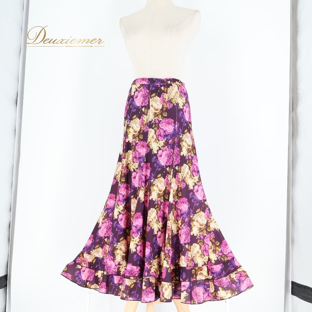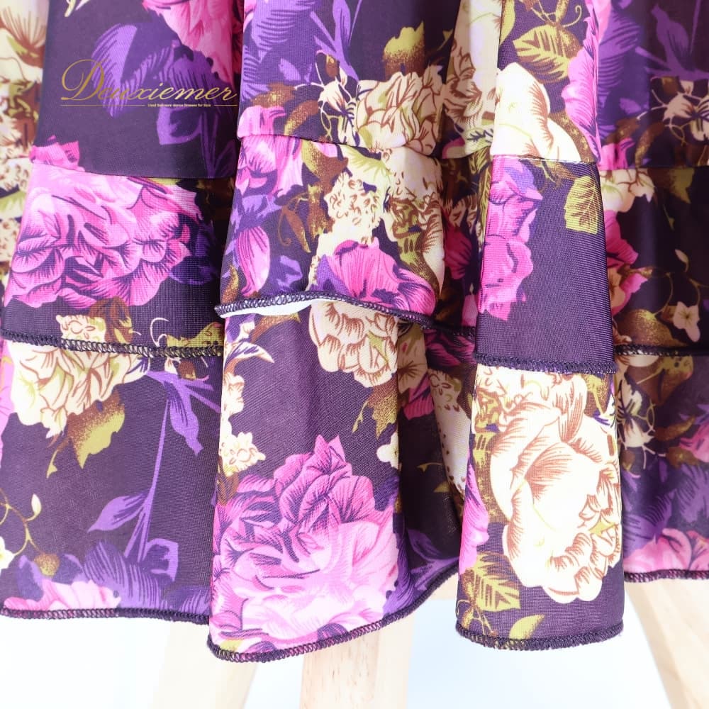 フラメンコ 衣装 ファルダ スカート ピンク系 パープル系 紫 ピンク 黄色 花柄 伸縮 ストレッチ レッスン 練習着 ダンス パーティ 発表会 フラメンコスカート フラメンコファルダ 花 大人かわいい きれいめ 華やか レッスン用 発表会用 ステージ衣装 エレガント