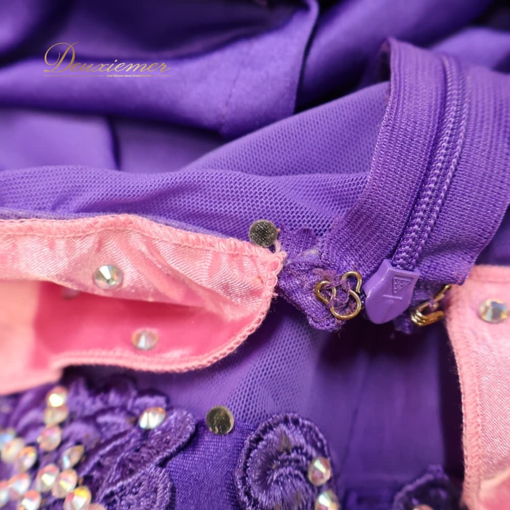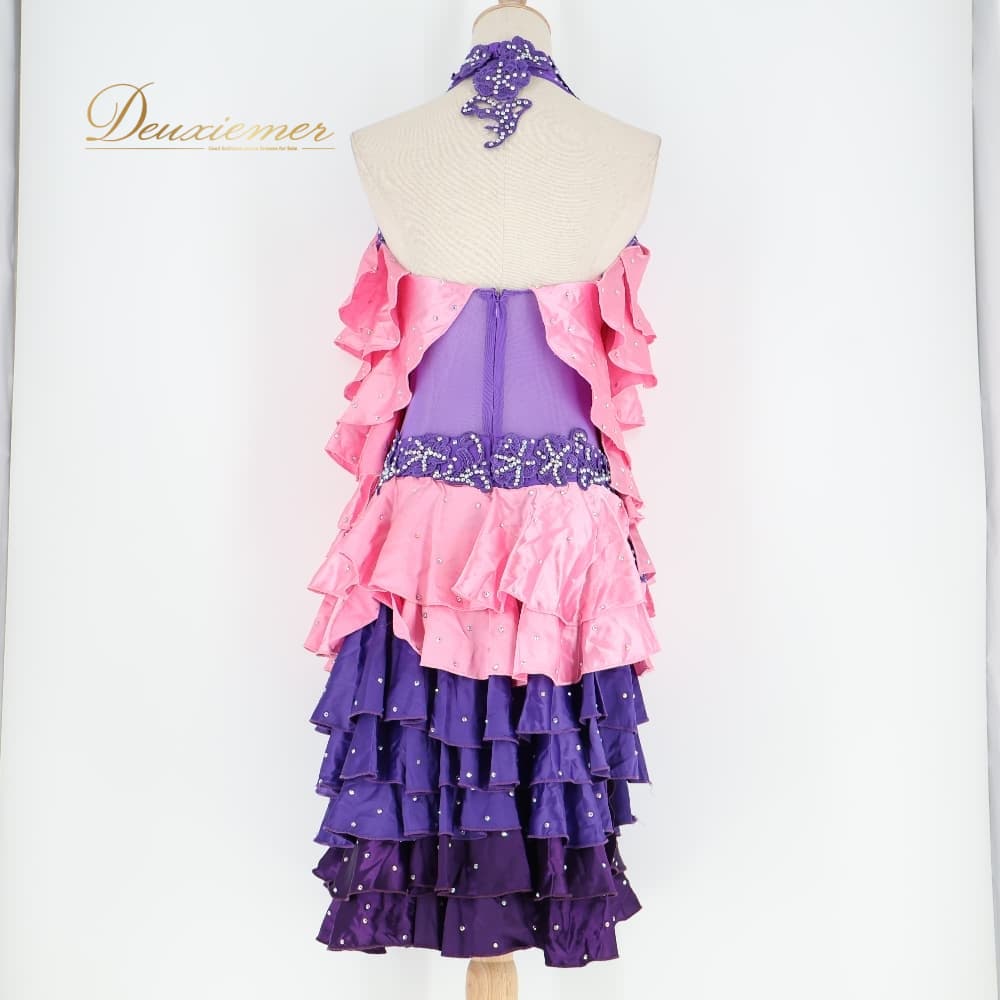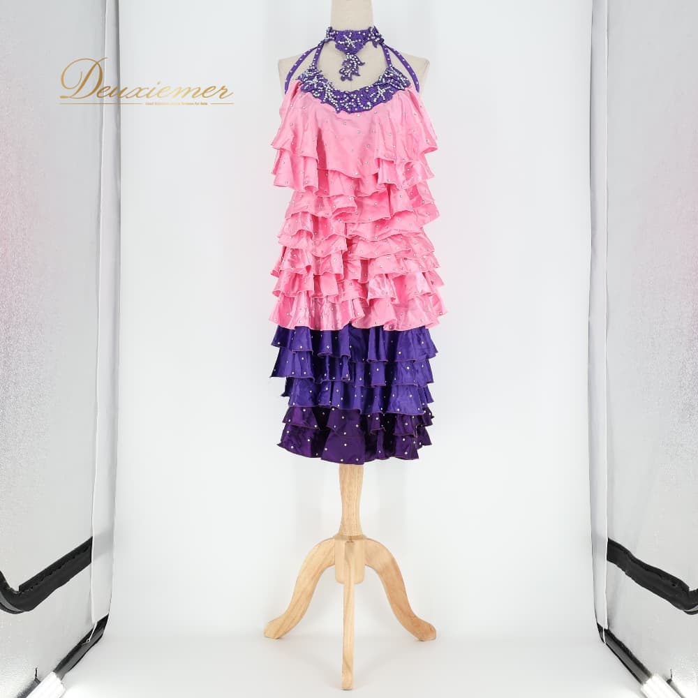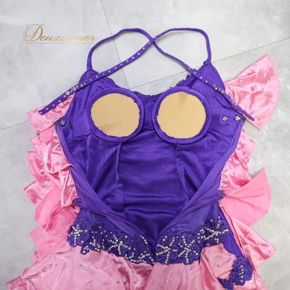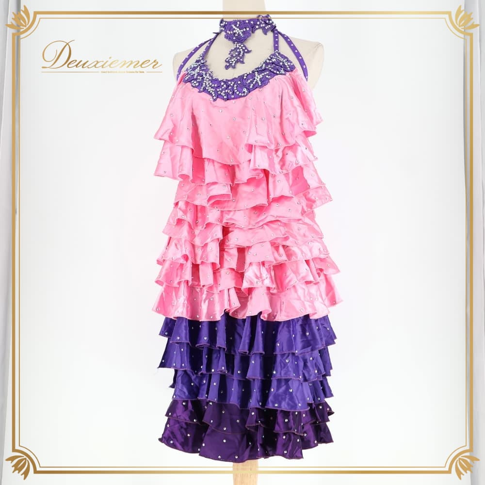 #ピンク #パープル #フリル #フリルデザイン #ガーリー #フェミニン #エレガント #衣装 #ステージ衣装 #ダンス衣装 #レオタード #背面ファスナー #胸パッド付き #伸縮性あり #ボタン仕様 #カラフル #華やか #大人かわいい #ストリートダンス #ENUTSU