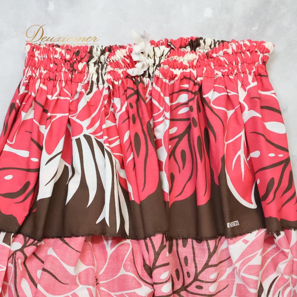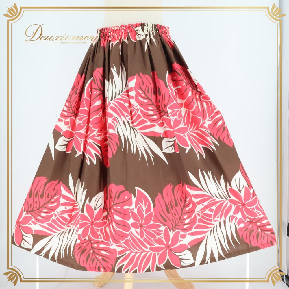 フラダンス 衣装 パウスカート ブラウン系 ピンク系 モンステラ柄 ティアレ柄 シングル シンプル かわいい 華やか 鮮やか 明るい 茶 白 ダンス衣装 ハワイアンダンス レディース ハワイアン アロハ ハワイアンプリント フラ ダンス レッスン 練習 練習用