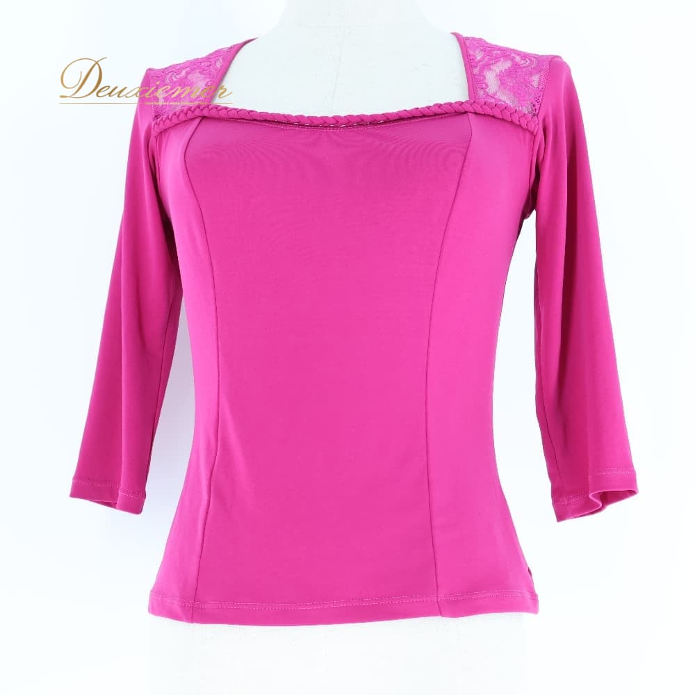 社交ダンス 衣装 チャコット Chacott トップス ブラウス ピンク系 パープル系 ピンク 紫 レース レッスン パーティ 発表会 ダンス 伸縮 ストレッチ 上品 カットソー フォーマル 練習着 発表会用 舞台衣装 ステージ衣装 薄手 きれいめ 大人 可愛い レディース