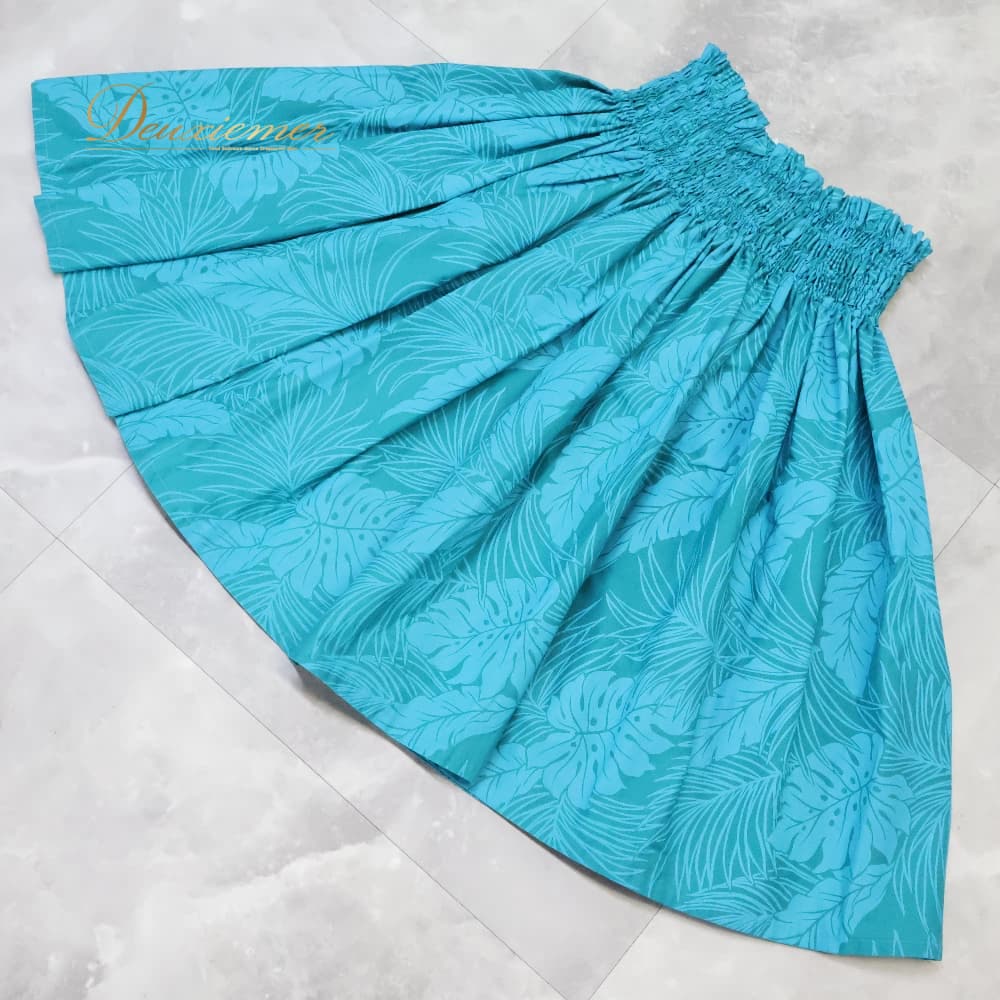 フラダンス 衣装 パウスカート 青緑系 ワントーン モンステラ柄 リーフ柄 シングル シンプル かわいい 華やか 鮮やか 明るい 水色 ダンス衣装 ハワイアンダンス レディース ハワイアン アロハ ハワイアンプリント フラ レッスン 練習 ブルー系 グリーン系 フラガール パウスカート単品 ボタニカル柄 水色系 ターコイズ系 サマードレス風 総柄 スカート ひらひら シンプルデザイン フレア ふんわり フラの衣装 フラレッスン 練習用 リゾートコーデ ハワイアンテイスト 葉っぱ柄 リゾートファッション