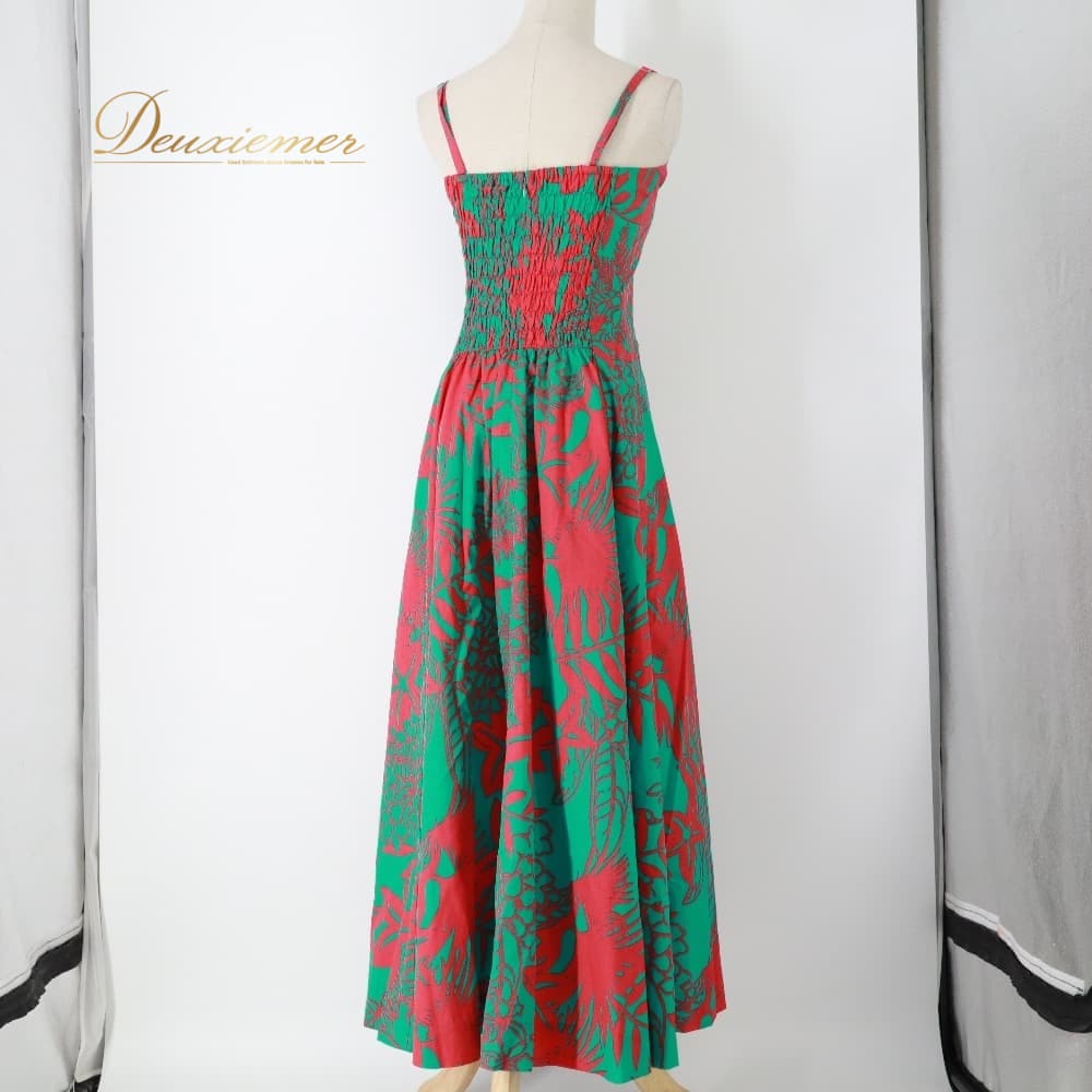 フラダンス 衣装 ワンピース ドレス グリーン系 マーメイドライン エムエムジェイ MermaidLine MMJ ハワイアンプリント キャミソールドレス フリル 華やか 鮮やか かわいい アロハ フラ ダンス レッスン 練習 ハワイアンダンス レッド系 Mermeid マーメイドワンピース ハワイアン キャミワンピ フレアワンピース タンクトップ風 リゾート 柄ワンピ 花柄風 ボタニカル 鮮やかプリント 南国風 レッド グリーン 配色 目立つ デザイン 大人可愛い ダンス発表会衣装 舞台衣装