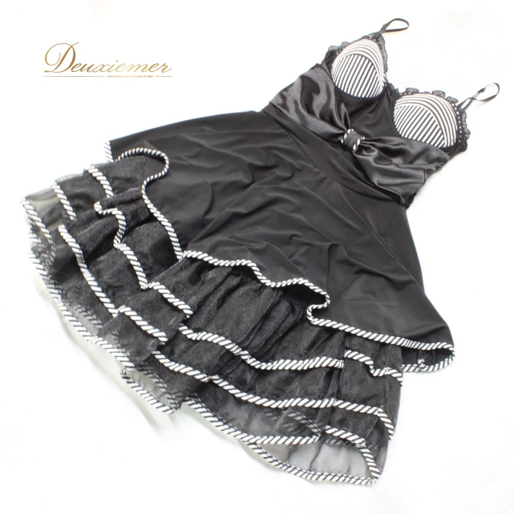 社交ダンス 衣装 ICHIOKU イチオク ドレス ラテン ブラック系 ホワイト系 ボーダー ストライプ リボン パーティドレス ステージ衣装 黒 白 ラテン衣装 ダンスドレス 黒白 バイカラー ストライプ柄 ボーダー柄 ウエストマーク フレアスカート ひざ丈 ワンピース風 ノースリーブ ワルツ タンゴ モダン兼用 レディーズ 婦人服 ポリエステル 競技用 舞台用 練習用 ダンス 発表会 フリル裾 デザイン ワンピースドレス