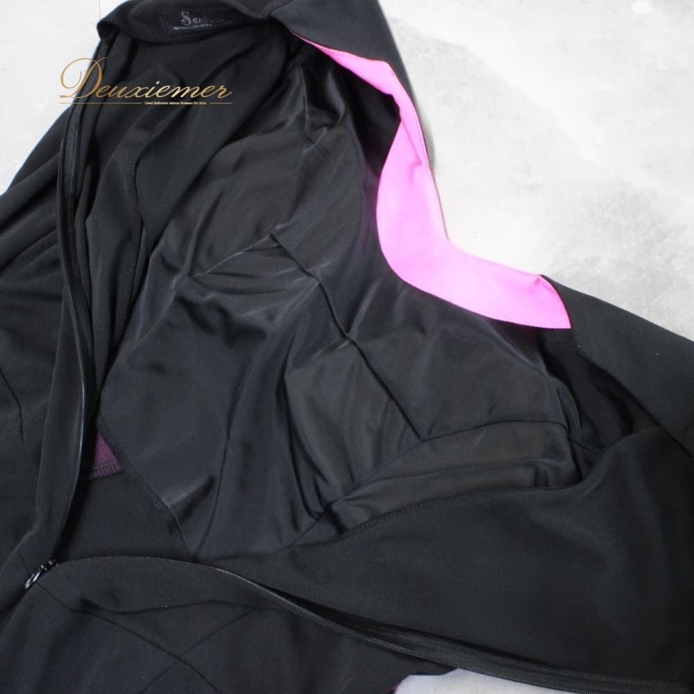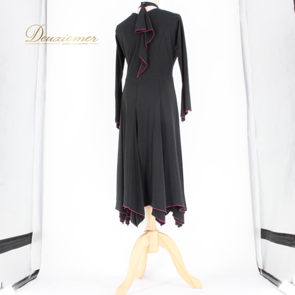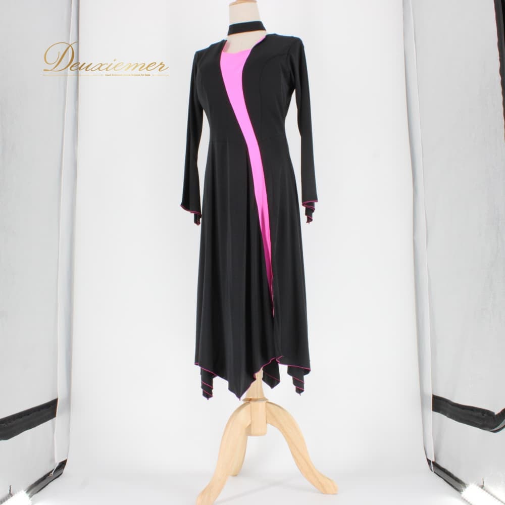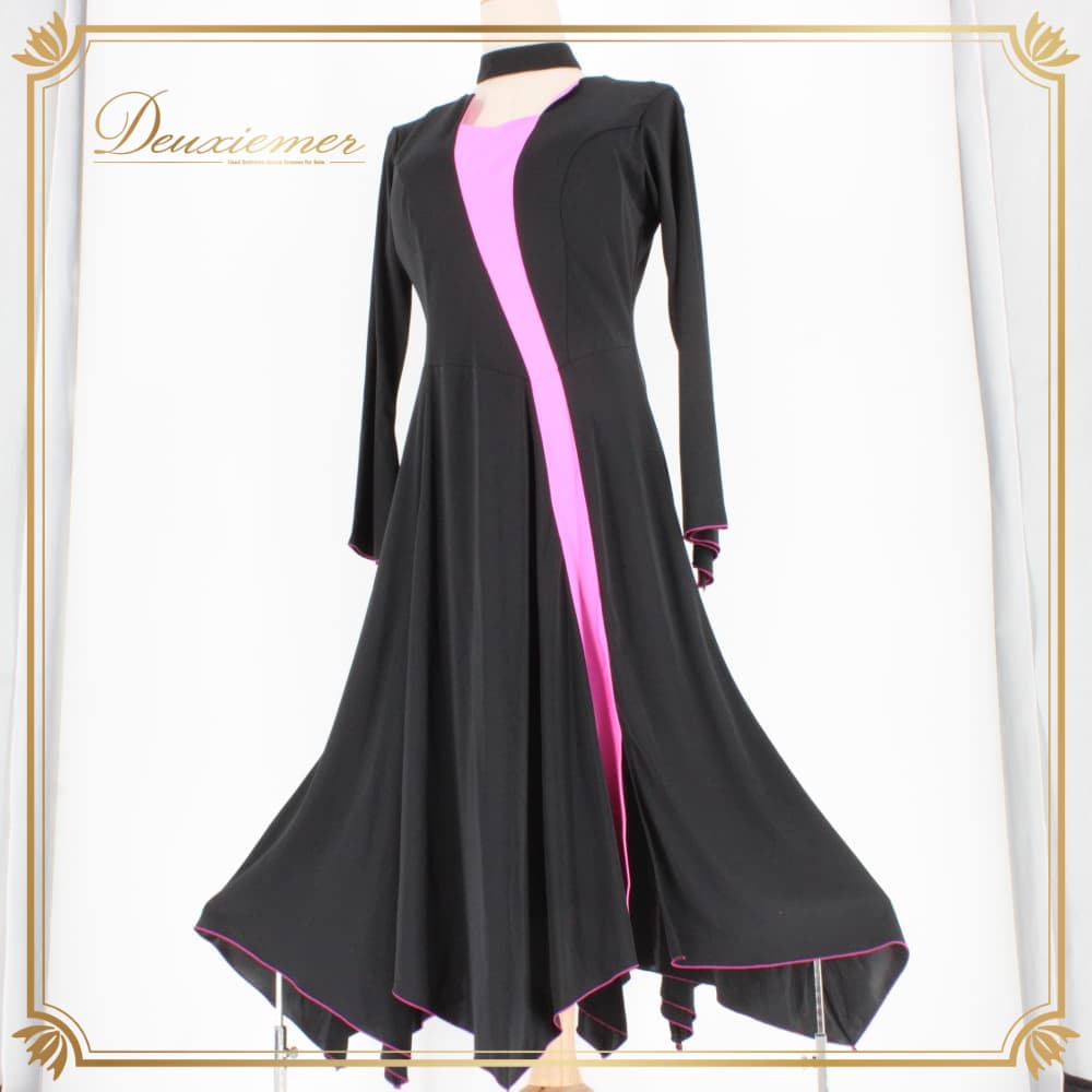 社交ダンス 衣装 Sanline サンリーヌ ドレス スタンダード ブラック系 ピンク系 黒 ワンピース 長袖 チョーカー 無地 バイカラー 社交ダンスドレス スタンダードドレス モダンドレス ラテンじゃない ワンピースドレス 黒ワンピース ピンクライン バックファスナー 伸縮素材 ストレッチ 競技用 ダンス衣装 練習用 舞台用 チョーカーワンピース 紫系ライン ロング丈 着痩せ フレアスカート 前身頃無地 後ろ開き 黒×ピンク 黒地ピンクストライプ ブラック×ピンク系 長袖ワンピース ドレス女性用
