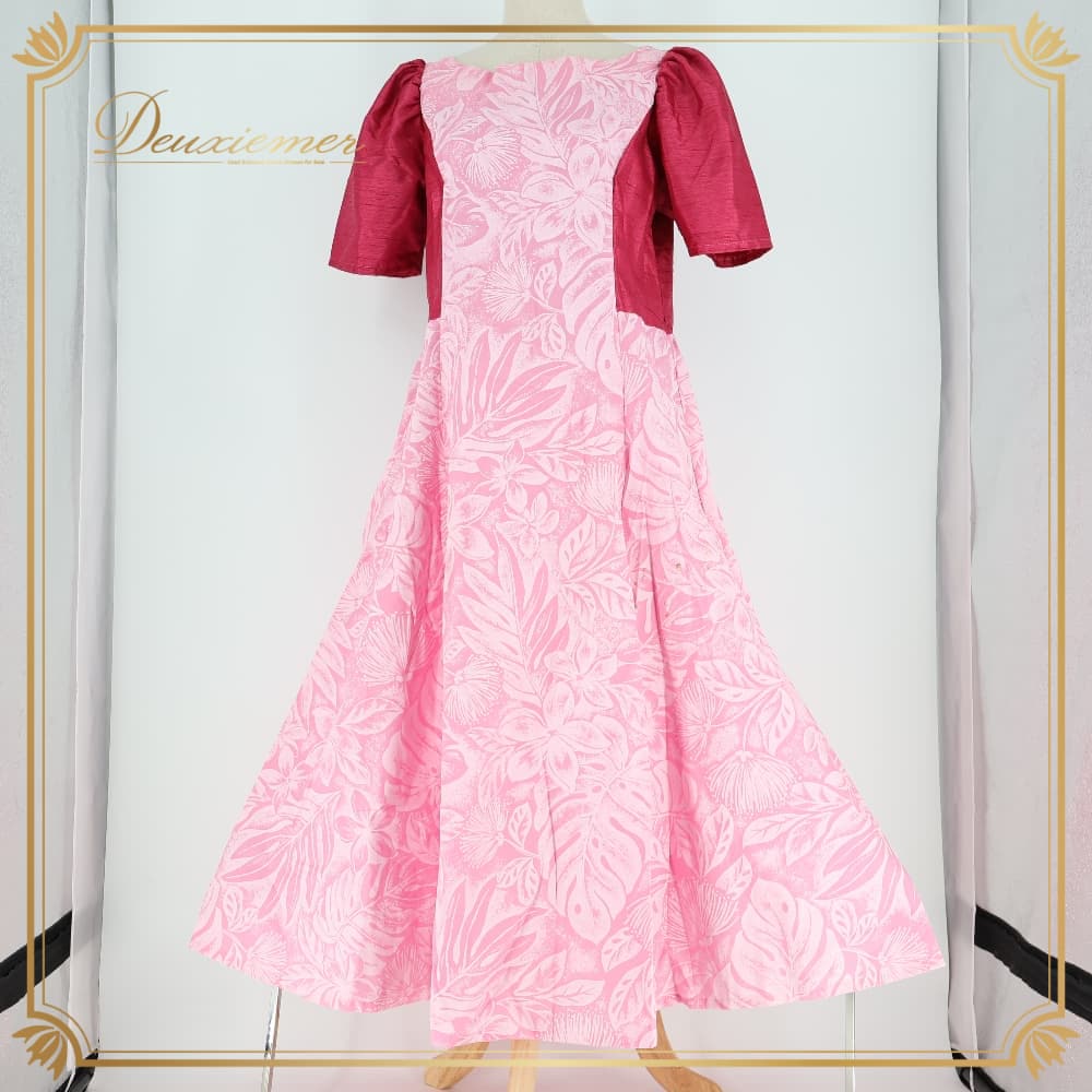 ハワイアンダンス 衣装 ワンピース フラダンス ピンク系 ラウアエ柄 プルメリア柄 レフア柄 花柄 鮮やか 華やか フラ ダンス かわいい ダンス衣装 イベント ステージ ハワイアン アロハ ハワイアンプリント