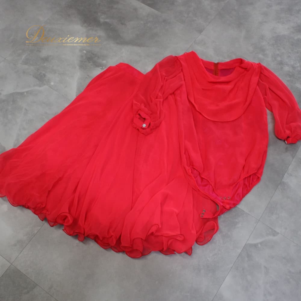 社交ダンス 衣装 Fashionα ファッションアルファ ツーピース レッスンウェア レッド系 無地 シンプル 上下セット セットアップ スタンダード スタンダード用 モダン用 フォーマル ダンス 練習用 レッスン用 ラテン以外 蛍光レッド系 差し色 派手カラー 舞台映え 華やか フレアスカート フリル風 ボリューム感 シフォン風 透け感なし 大人可愛い きれいめ 上品 動きやすい サラッと素材 ポリエステル Mサイズ 半袖 ドルマンスリーブ風 くびれ デート衣装 発表会 コンクール レッドワンピース風
