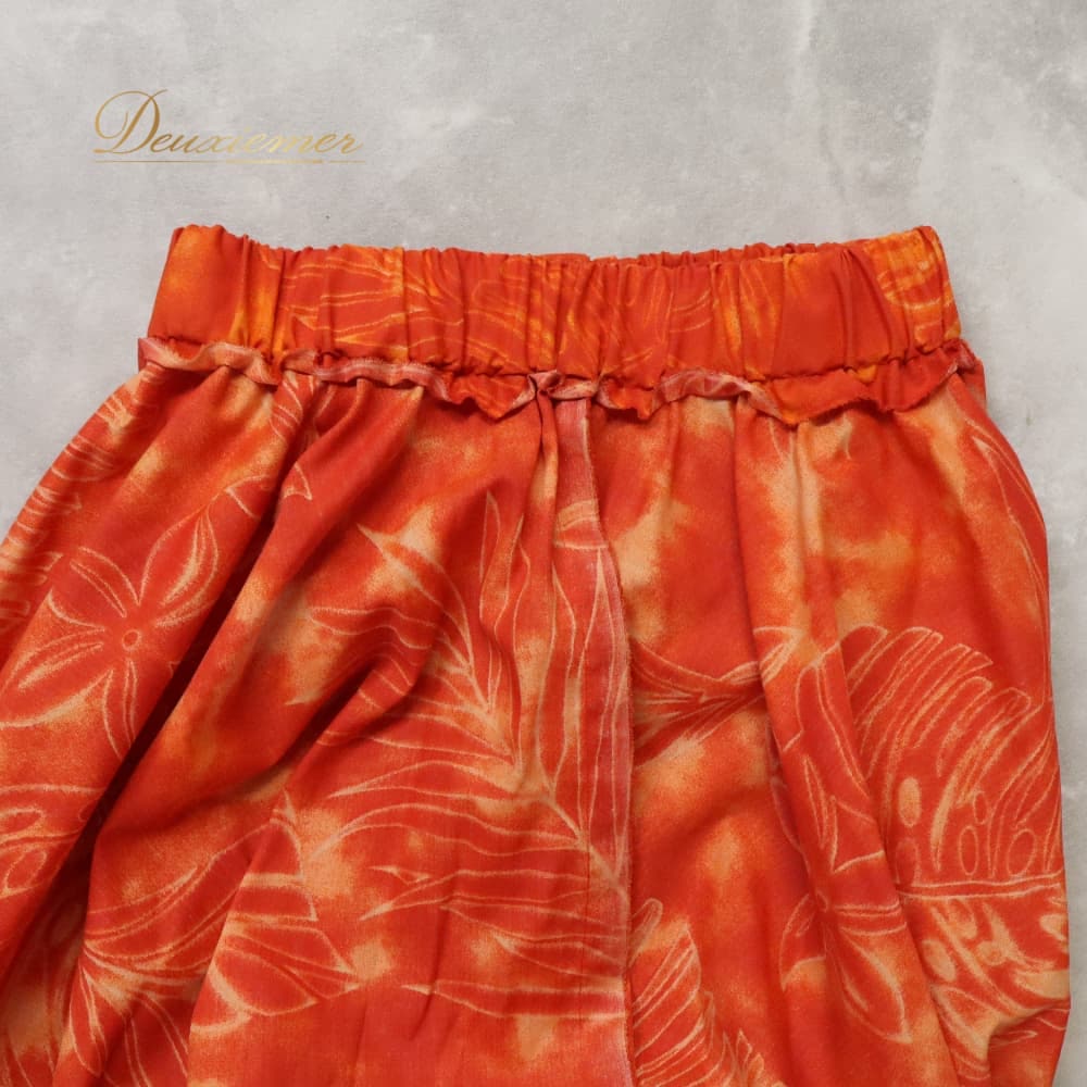 ハワイアンダンス 衣装 スカート フラダンス オレンジ系 モンステラ柄 プルメリア柄 ハワイアンプリント アロハ フラ ダンス レッスン 練習 橙 シングル イエロー系 黄 華やか 鮮やか かわいい おしゃれ 上品 軽やか フレアスカート ハワイアン柄 リゾート風 オレンジ イエロー モンステラ フラワー柄 南国 プルメリア カラフル きれいめ 大人かわいい ゆったり ふんわり 裾広がり ウエストゴム 伸縮性 ダンス衣装 フラ衣装 体操服 上質 軽量 練習用 発表会 コンサート イベント 旅行 海