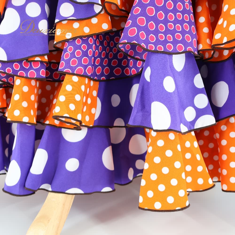 フラメンコ 衣装 SONIA JOHNES ソニアジョーンズ ツーピース ブラウン系 上下セット セットアップ トップス ファルダ スカート ハイウエスト 水玉 ドット 茶 白 水色 紫 カラフル ポップ ボランテ ホワイト系 パープル系 ブルー系 オレンジ系