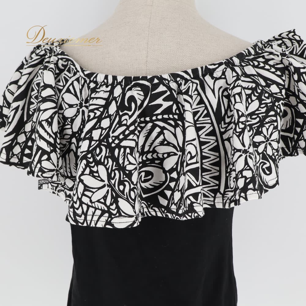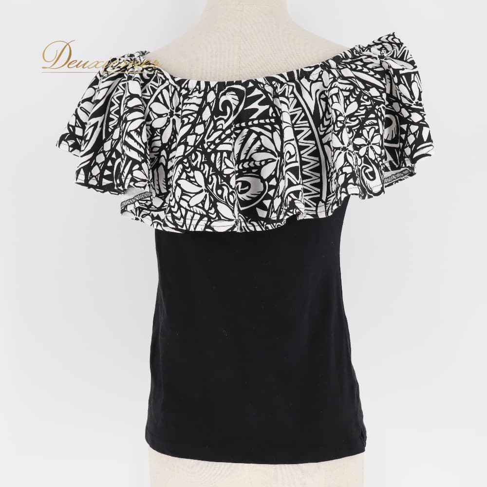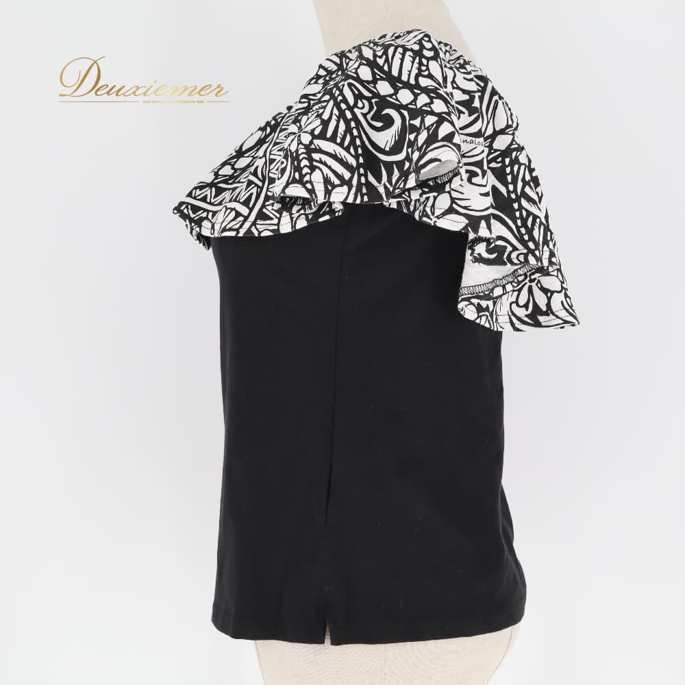 ハワイアンダンス 衣装 Maunaloa マウナロア Tシャツ カットソー フラダンス ブラック系 ティアレ柄 ハワイアンプリント 花柄 植物柄 黒 白 ホワイト系 アロハ フラ ダンス レッスン 練習 フリル おしゃれ 上品 大人っぽい フラ衣装 レディース トップス 半袖 7分袖風 ティアレ ブラウス風 フリル袖 バックスタイルおしゃれ 黒白 モノトーン ダンスウェア 大人かわいい きれいめ カジュアル 上品コーデ エレガント フラレッスン 練習用 旅行 ハワイアン オケージョン 普段使い リゾート