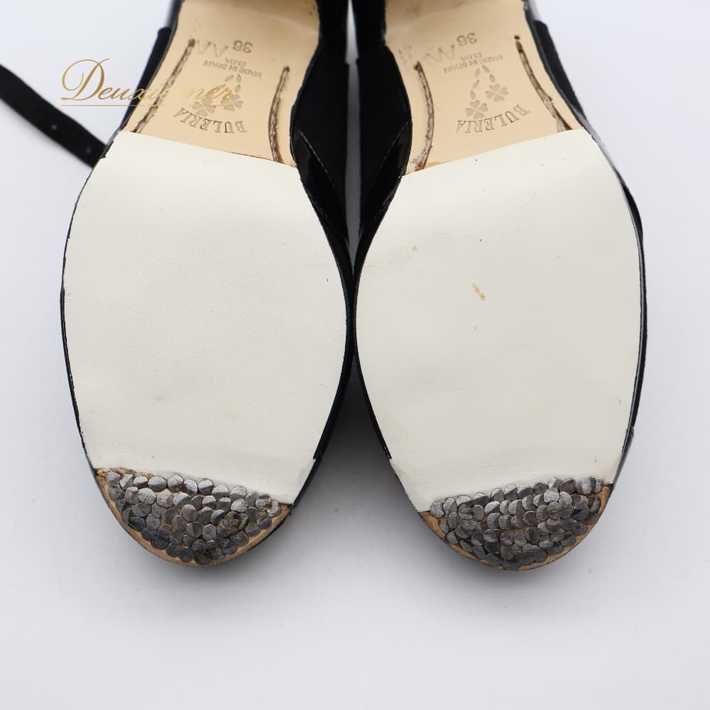 フラメンコ 衣装 ダンスシューズ ブラック系 BULERIA 36サイズ AA 靴 くつ ヒール レディース スペイン製 釘 釘有り 光沢 スエード スウェード 上品 シューズ かわいい オールブラック 袋 収納袋 ストラップ 練習 レッスン ELDA
