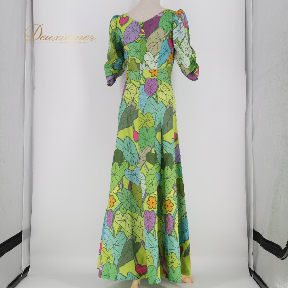 ▽鮮やかな植物柄フレアワンピース