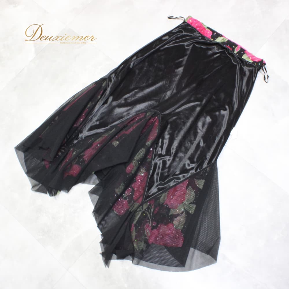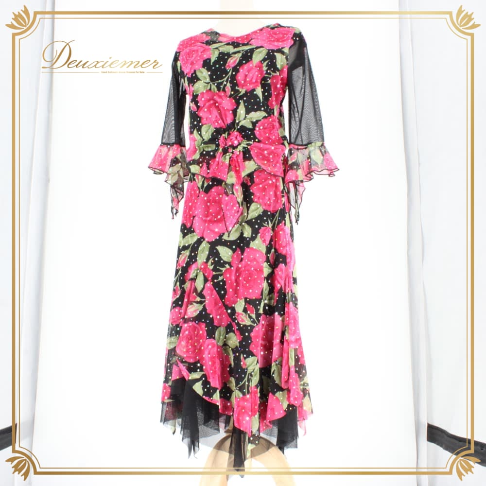 社交ダンス 衣装 un×Ⅱ ツーピース スタンダード ブラック系 ピンク系 グリーン系 黒 緑 セットアップ 上下セット 花柄 レース キラキラ レディース ワンピース風 ドレス ツーピーススカート ダンス衣装 舞台衣装 発表会 レッスン 練習 きれいめ 大人 上品 派手目 個性的 フリル袖 フレア袖 シースルー袖 透け感 チュール風 レイヤード ベルスリーブ ロングスカート 伸縮性 ポリウレタン ステージ 競技用 モダン スタンダードドレス 女性用 ガーデン柄 フラワー柄 光沢風 光る風 キラキラ感