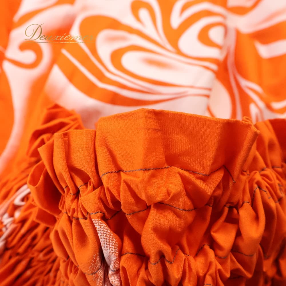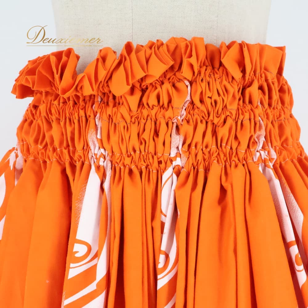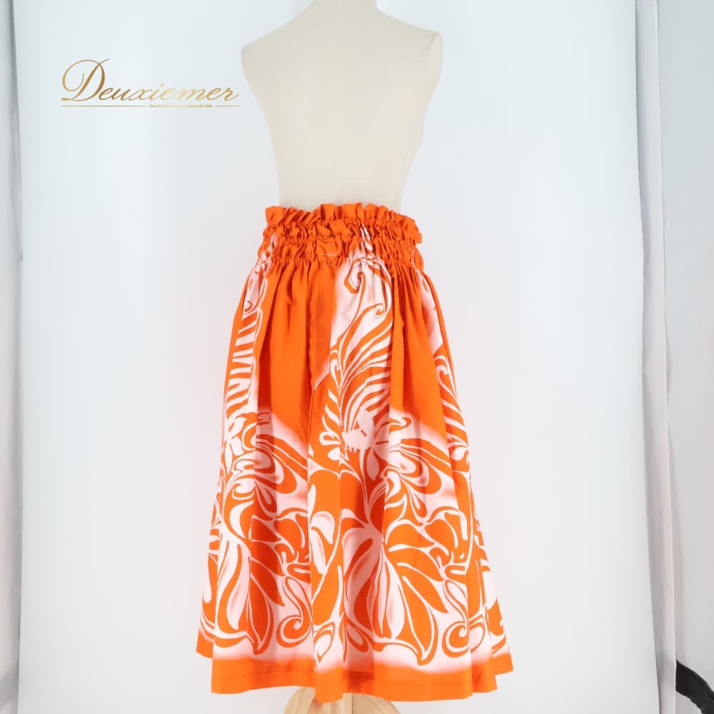ハワイアンダンス 衣装 フラダンス スカート オレンジ系 ツーカラー ティアレ柄 シングル シンプル かわいい 華やか 鮮やか 明るい 元気 橙 白 ハワイアン アロハ ハワイアンプリント フラ ダンス レッスン 練習 ウエストゴム フリーサイズ 濃淡 花柄