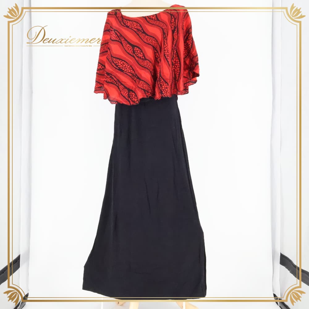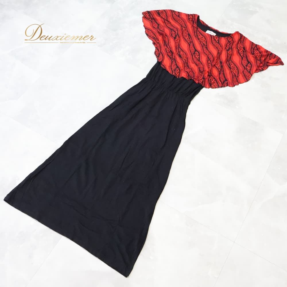 #MakaMaka #マカマカ #ブラック #レッド #バイカラー #スリット #おしゃれスリット #エレガント #レディースファッション #ワンピース #ロングワンピース #ドレッシー #大人コーデ #シンプルコーデ #アクセントカラー #レーヨン #ポリウレタン #若干伸縮 #Mサイズ #ENUTSU