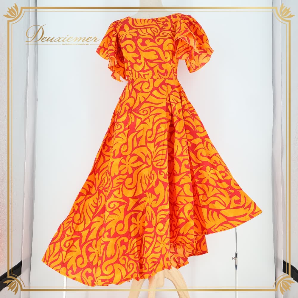 #MermaidLine #マーメイドライン #MMJ #マーメイドドレス #花柄 #フラワープリント #レッド #オレンジ #ドレス #ワンピース #背面ファスナー #ウエスト調整 #ゴム仕様 #伸縮性あり #ポリエステル #コットン #レディースファッション #大人可愛い #フェミニン #ENUTSU