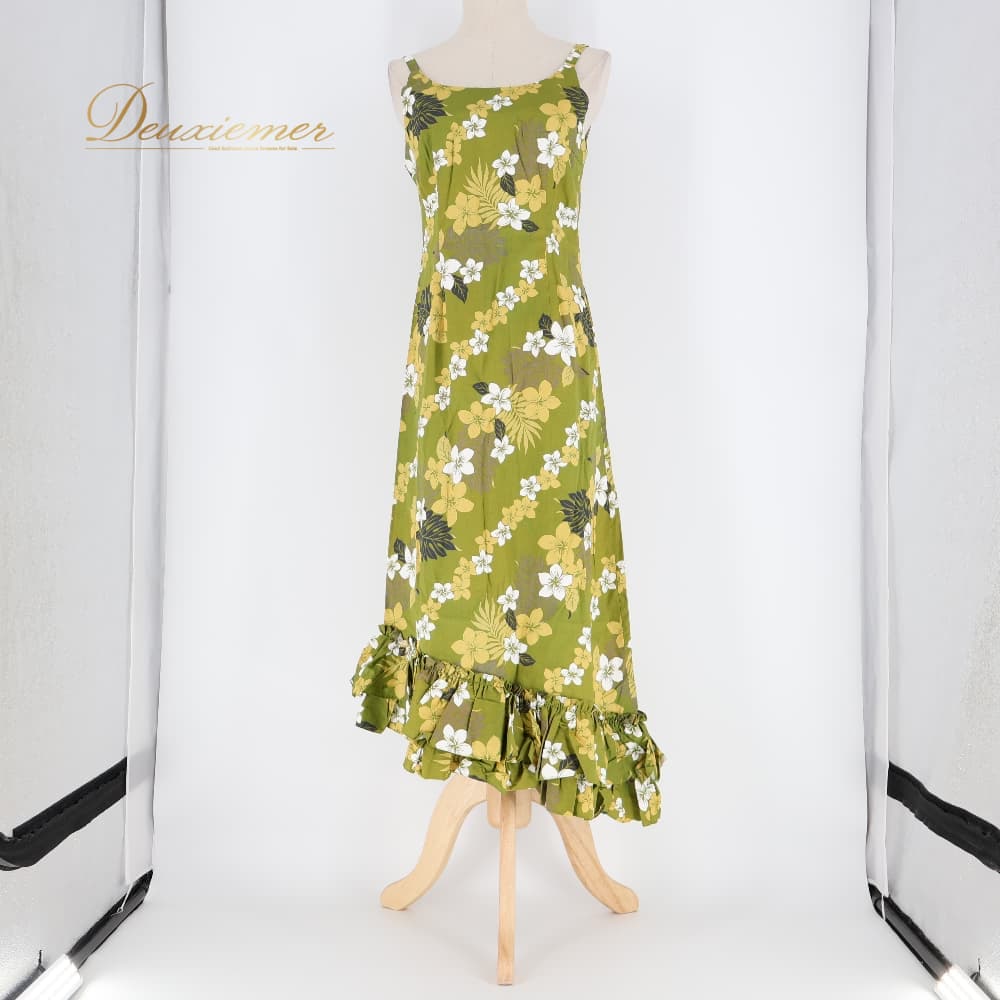 ハワイアンダンス 衣装 ドレス フラダンス グリーン系 Aloha Kids フラ ダンス 花柄 フリル アシンメトリー ハワイアンプリント アロハ 緑 黄 白 かわいい 華やか ダンス衣装 イベント 袖なし ワイト系 イエロー系