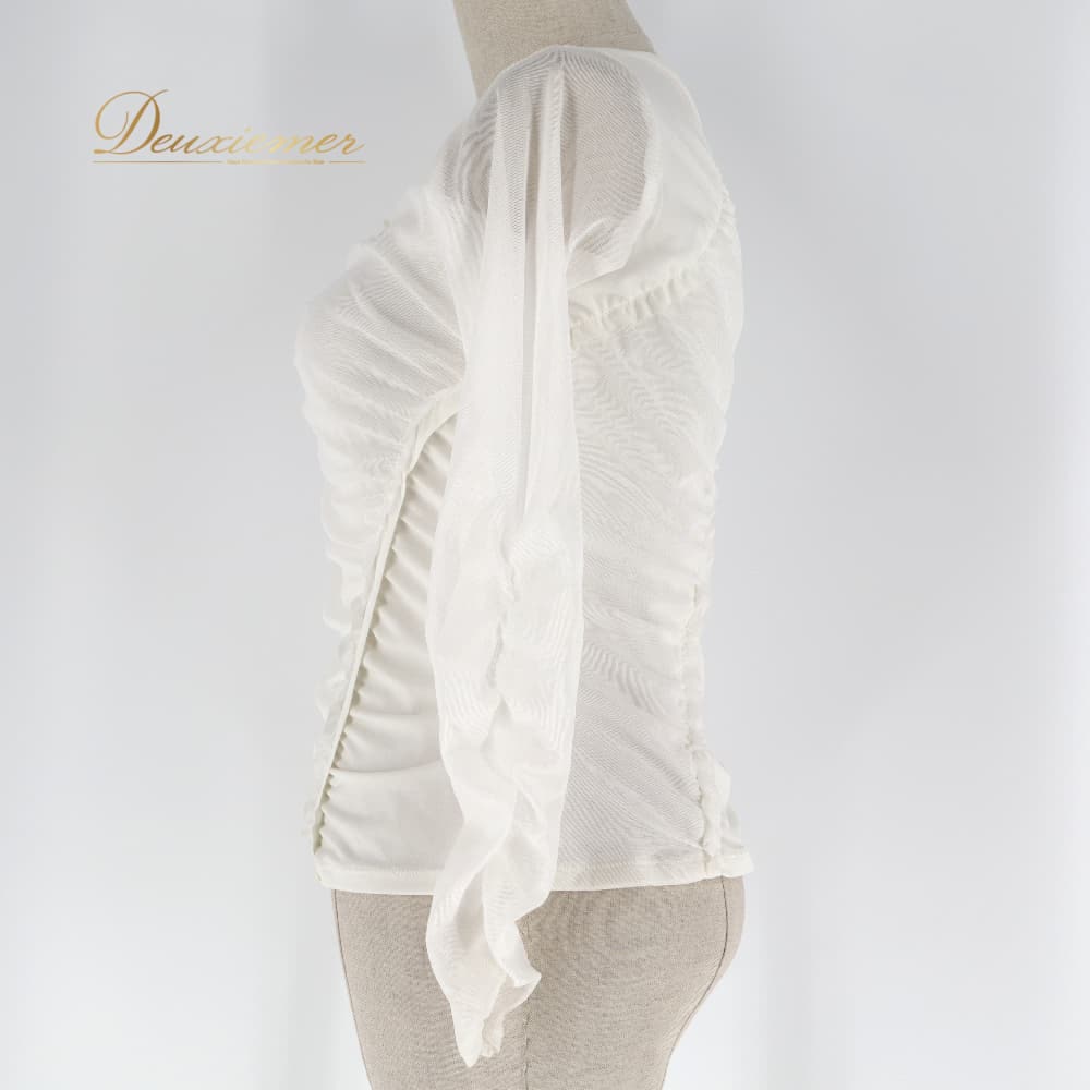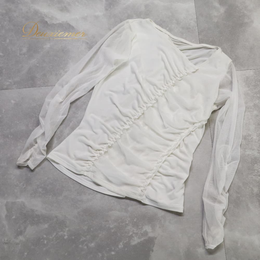 ▽真っ白シアーの上品ギャザーT