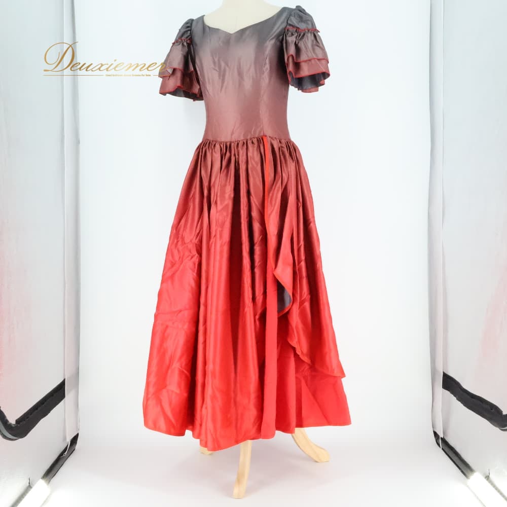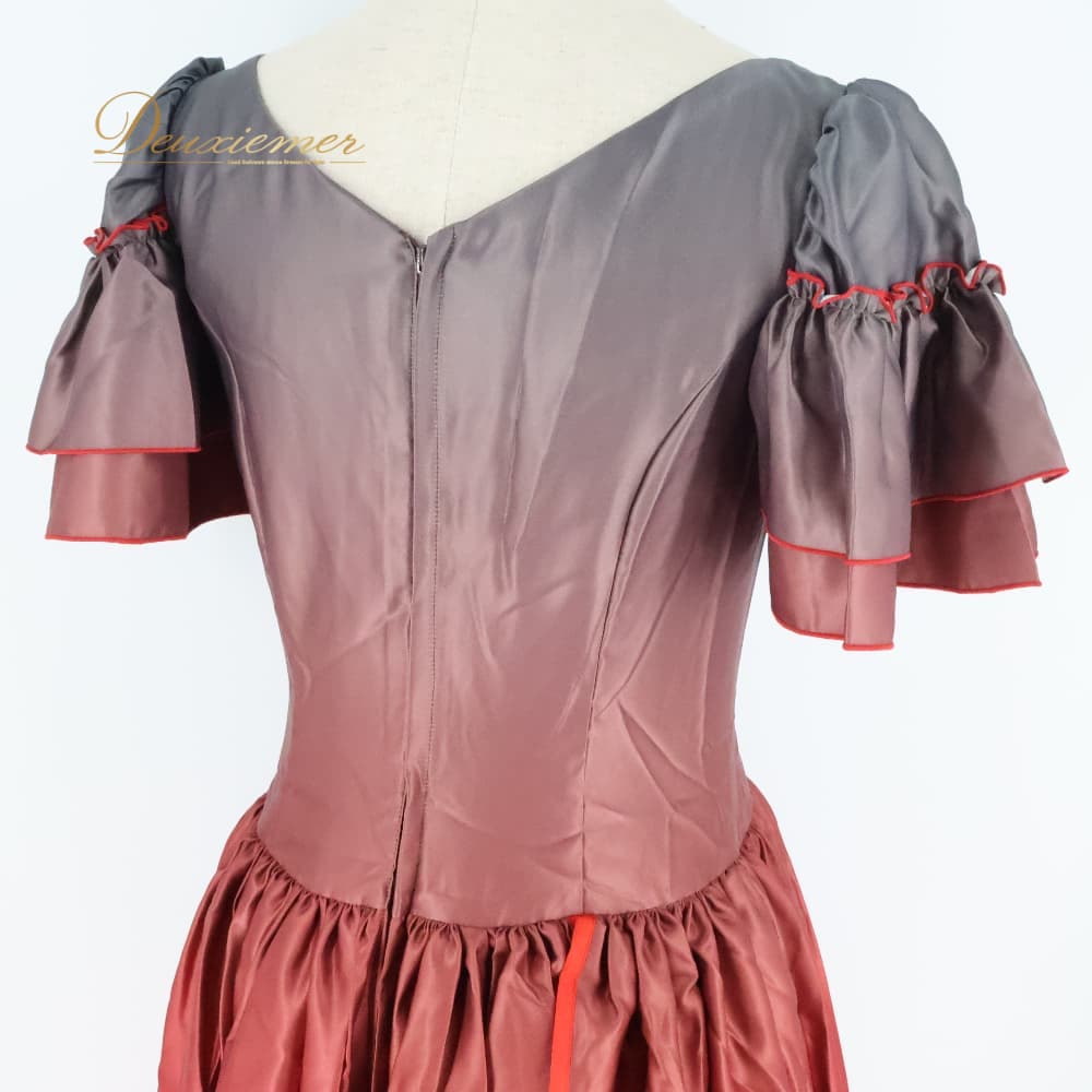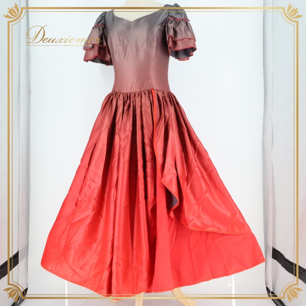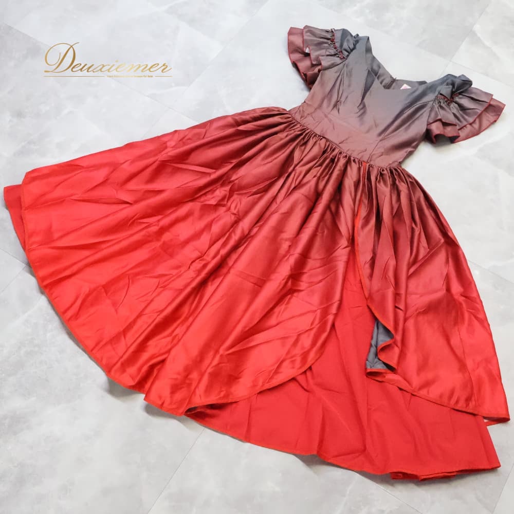 ハワイアンダンス 衣装 CoCoEmily ココエミリー ワンピース フラダンス レッド系 グレイ系 グラデーション 無地 フリル レイヤード風スカート 華やか 鮮やか おしゃれ 目を引く かわいい 赤 ハワイアン アロハ フラ ダンス レッスン 練習