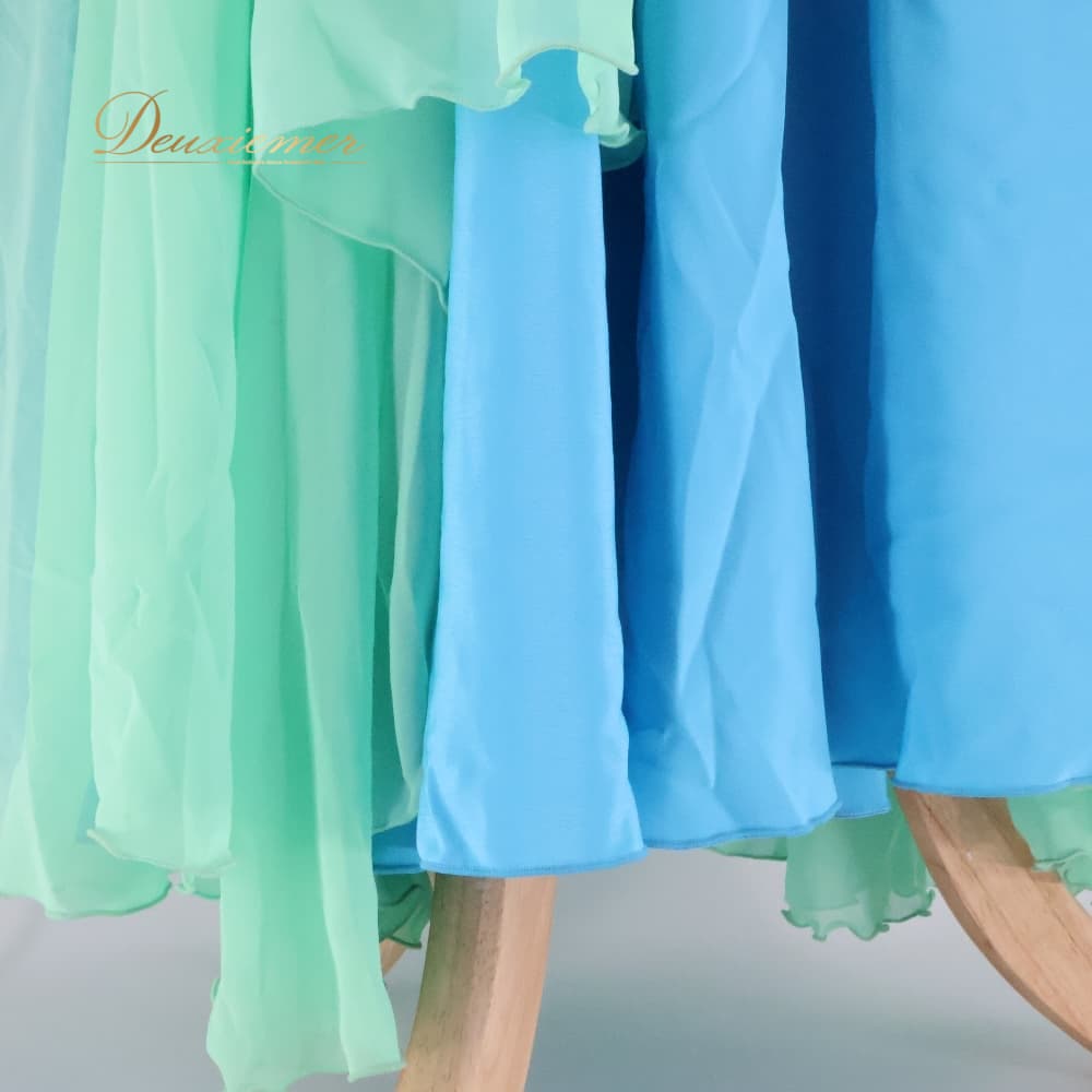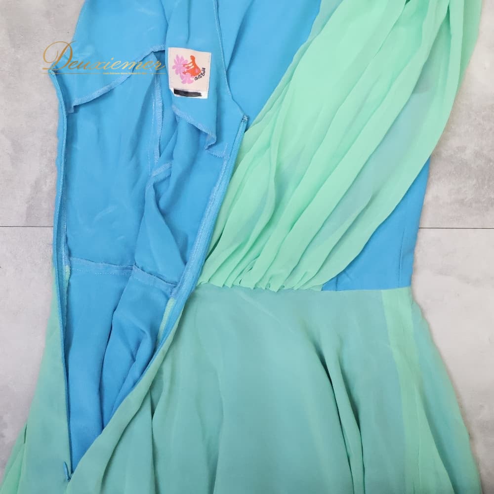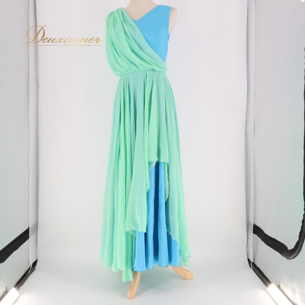 ハワイアンダンス 衣装 CoCoEmily ココエミリー ワンピース フラダンス ブルー系 グリーン系 無地 アシンメトリー かわいい 鮮やか 華やか 明るい 水色 黄緑 ミントグリーン ハワイアン アロハ ハワイアンプリント フラ ダンス レッスン 練習