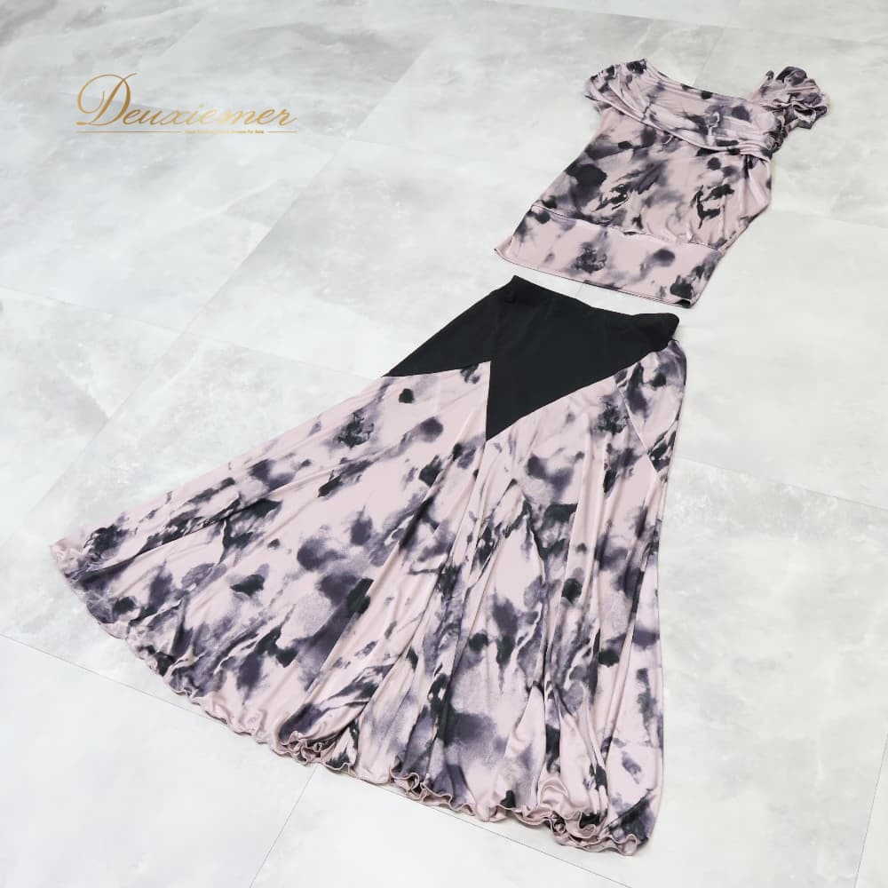 社交ダンス 衣装 Chacott チャコット ツーピース スタンダード ブラック系 ピンク系 パープル系 黒 ピンク 紫 模様 レッスン 練習着 パーティ 発表会 軽い 伸縮 ストレッチ 半袖 上品