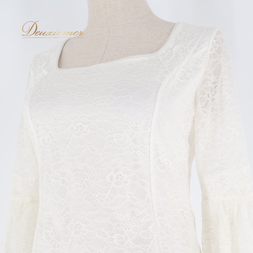 #白 #ホワイト #レース #レースワンピース #レースデザイン #きれいめ #上品コーデ #大人かわいい #フェミニン #オケージョン #お呼ばれ #結婚式 #パーティー #シンプル #合わせやすい #背面ファスナー #伸縮性あり #Lサイズ #ポリエステル #ENUTSU