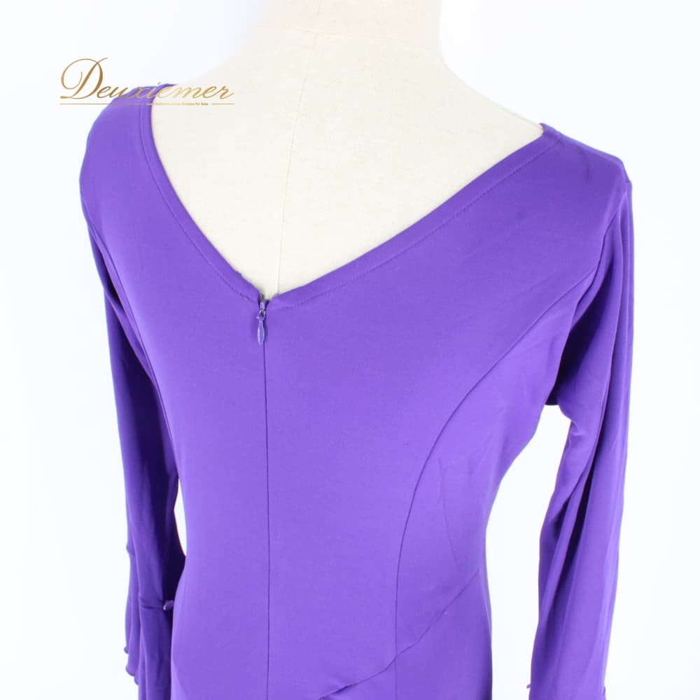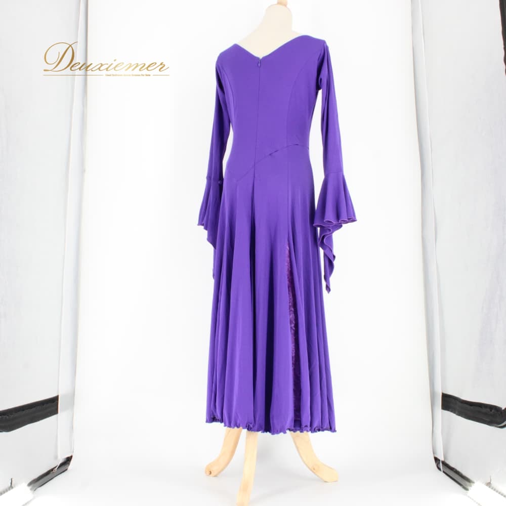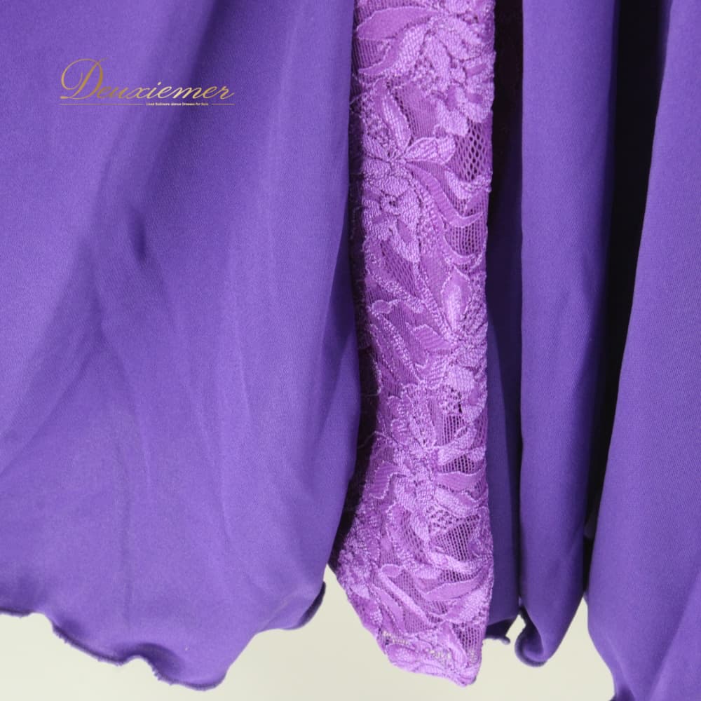 社交ダンス 衣装 Sanline サンリーヌ ドレス スタンダード パープル系 紫 長袖 レース 準正装 パーティドレス 上品 シンプル バイオレット系 紫系 ワンピース ロング丈 社交ダンス用 大人っぽい 切替 デザイン 美ライン バックファスナー 舞台衣装 ダンス衣装 練習用 マキシ丈 フレアスカート ドレッシー スタンドカラー風 大人の色香 11R