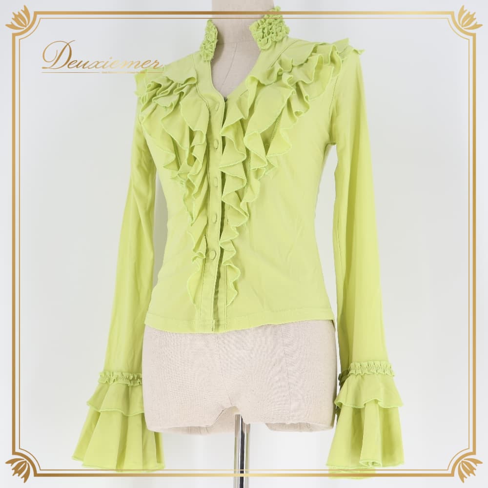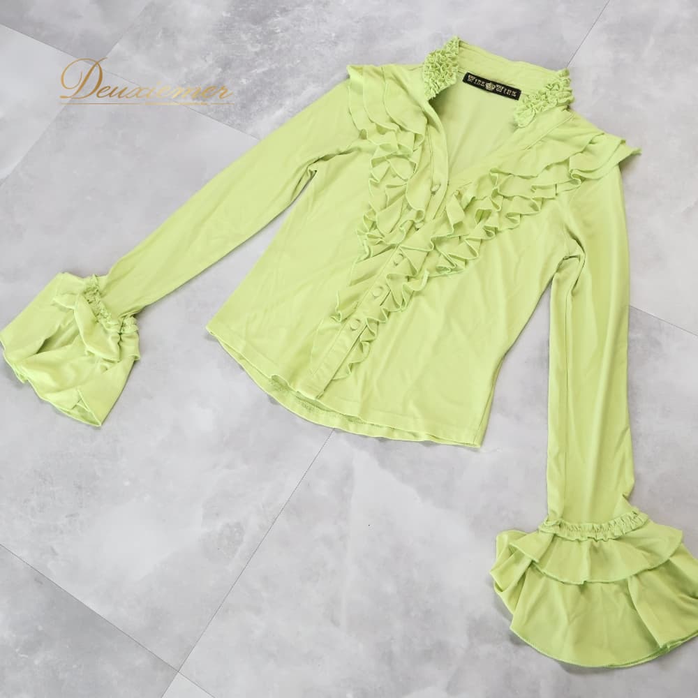 #WINKWINK #黄緑 #フリルブラウス #ブラウスコーデ #かわいい #ガーリー #ガーリーコーデ #春コーデ #夏コーデ #フロントボタン #ボタンデザイン #伸縮性あり #おしゃれ #きれいめカジュアル #通勤コーデ #オフィスカジュアル #レディースファッション #ポリエステル100 #フリーサイズ感 #ENUTSU