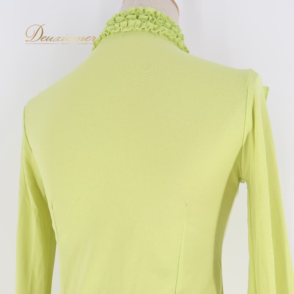 フラメンコ 衣装 WINK WINK ブラウス トップス グリーン系 緑 黄緑 長袖 無地 フリル レース 伸縮 ダンス パーティ 発表会 ストレッチ かわいい ダンス衣装 ステージ衣装