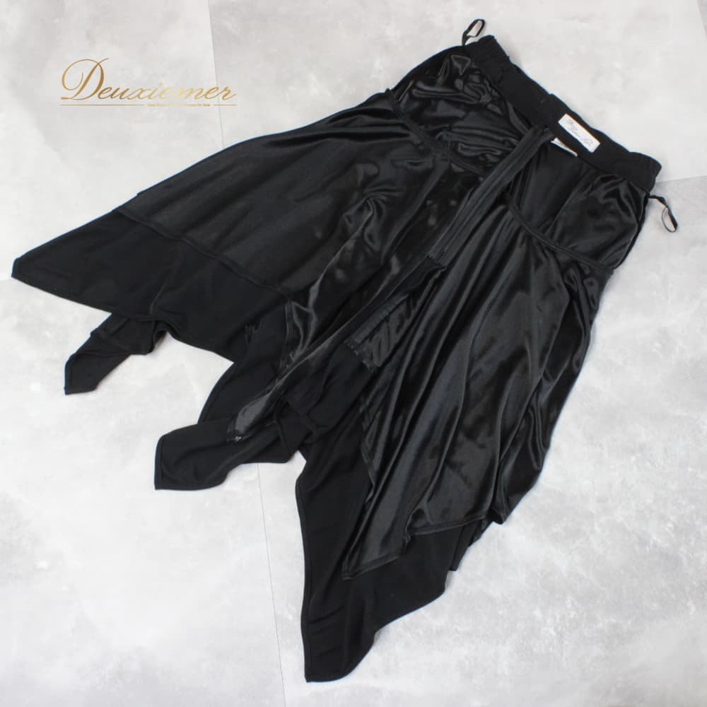 平置き実測:総丈約69cm(裾の一番長い部まで)、ウエスト約28.5cm