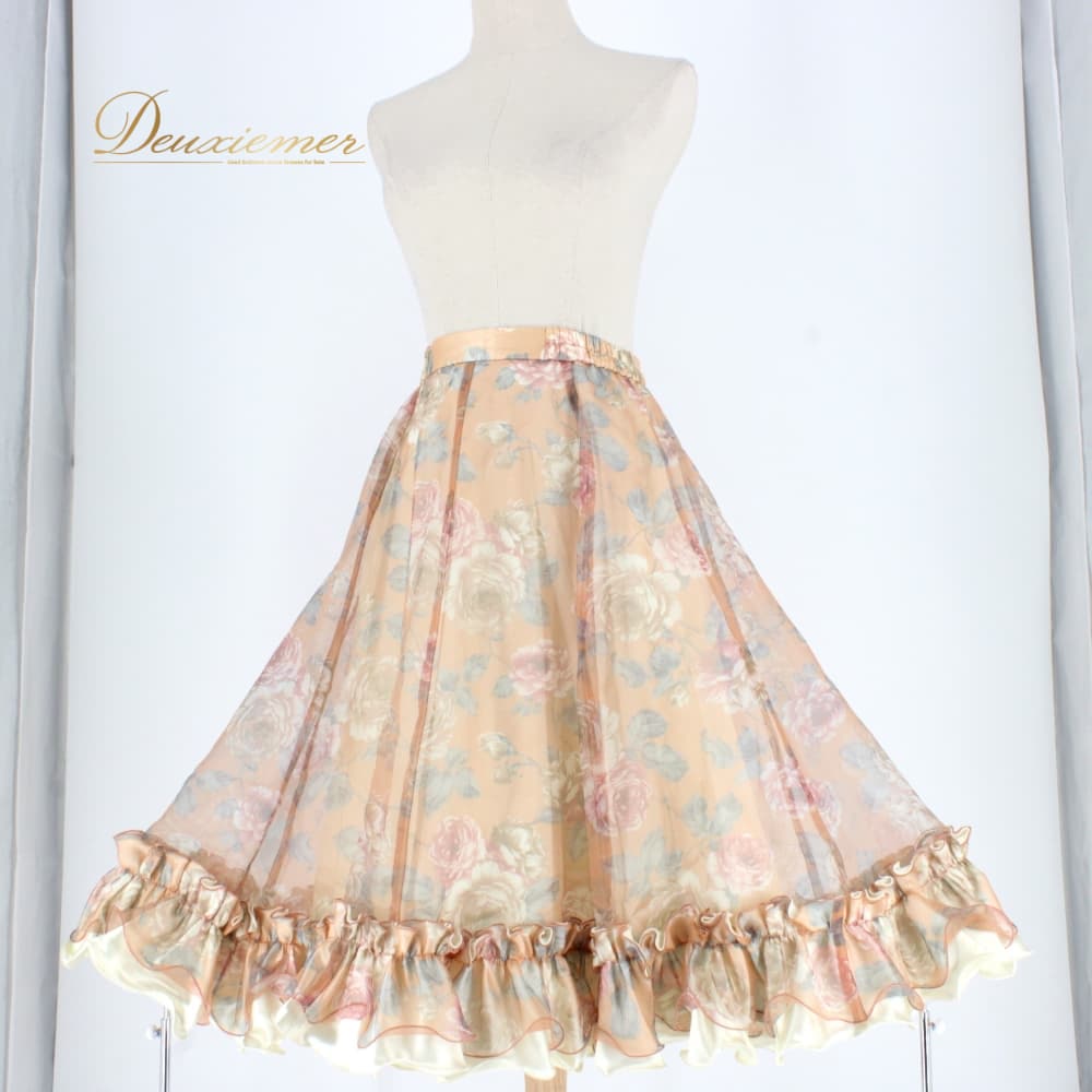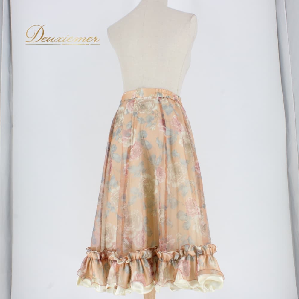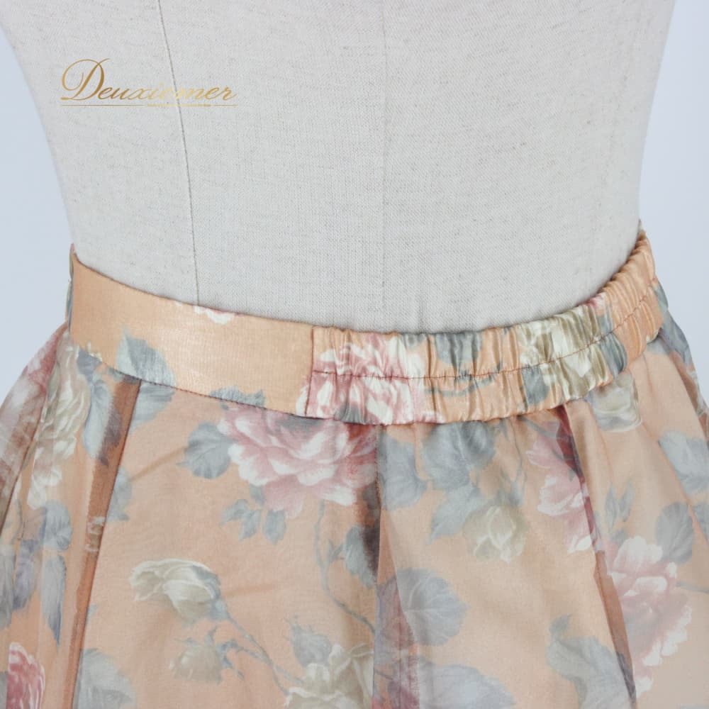 社交ダンス 衣装 U:NA ユーナ スカート レッスンウェア ベージュ系 ブラウン系 ピンク系 ブルー系 オレンジ系 花柄 フリル 練習着 スタンダード 社交ダンス用スカート レッスンスカート スタンダードダンス 競技用 花柄スカート フラワー柄 薔薇柄 ローズ柄 フリルスカート フレアスカート ふんわり 上品 エレガント ゴージャス 大人可愛い フェミニン 柄物 花 刺繍風 生地 ポリエステル 光沢感 きれいめ モダン 日本製