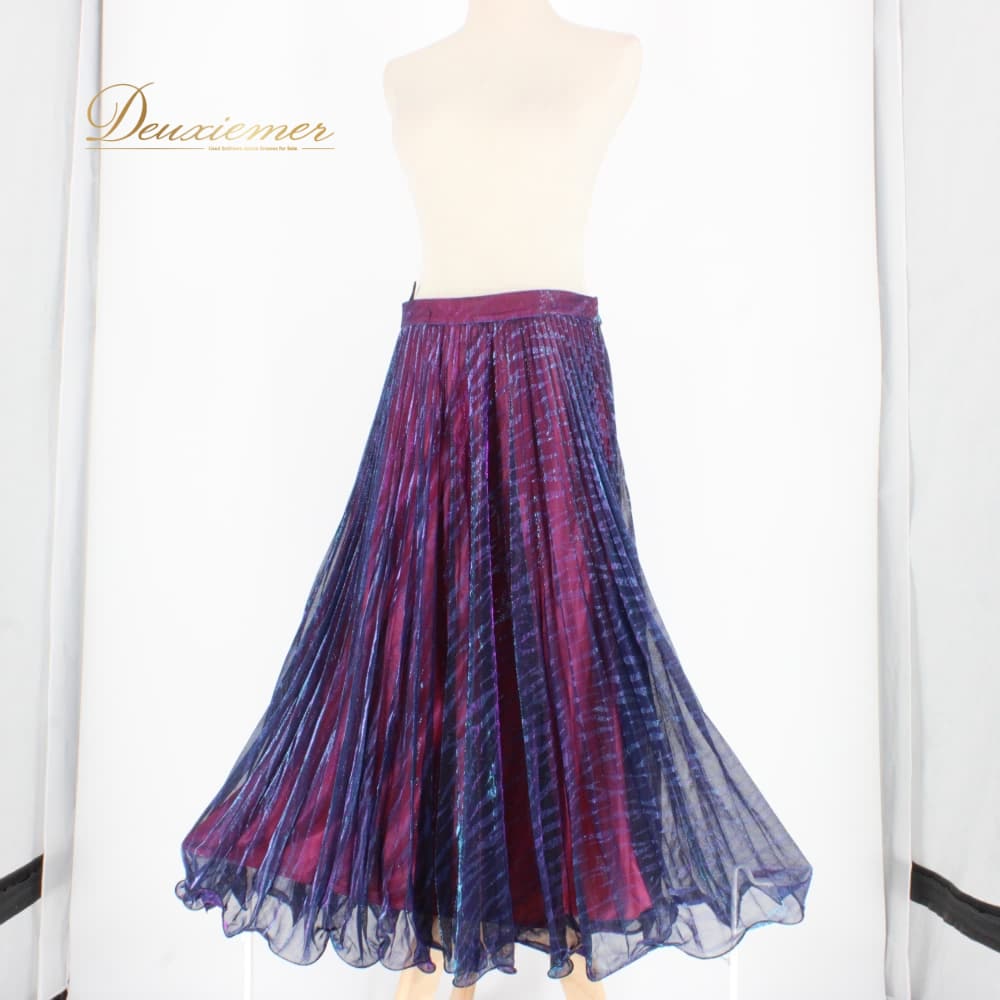 社交ダンス 衣装 U:NA ユーナ スカート レッスンウェア ピンク系 パープル系 ネイビー系 ブルー系 青 紫 練習着 スタンダード 透け感 レッスン用 競技用 レディース 女性用 ダンス衣装 フレアスカート シースルー 偏光カラー マルチカラー グラデーション風 青紫系 ボタニカル風 チェック風 ライン柄 ウエストファスナー ファスナー付き サイズL 総丈長め 動きやすい ステップ 衣装コーデ