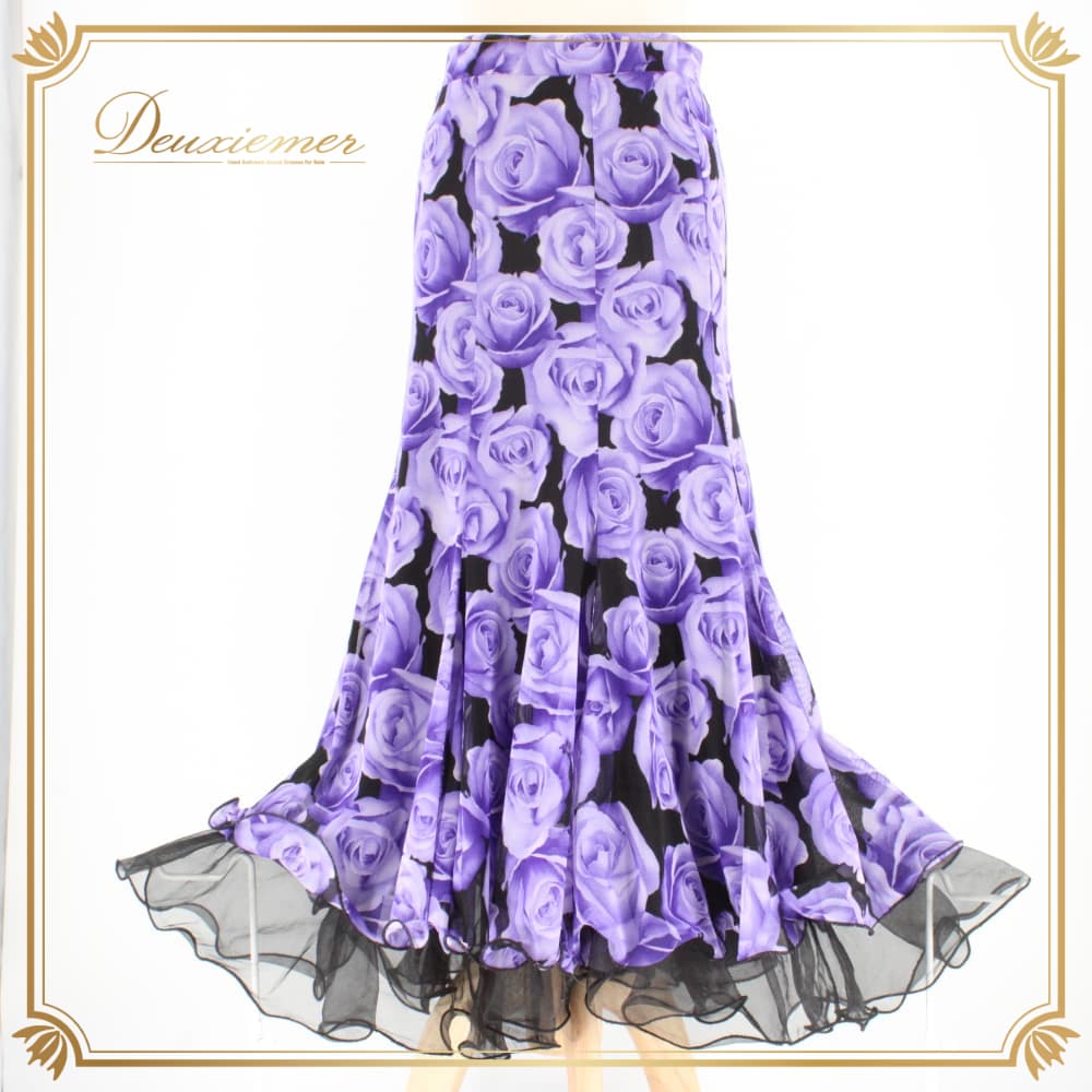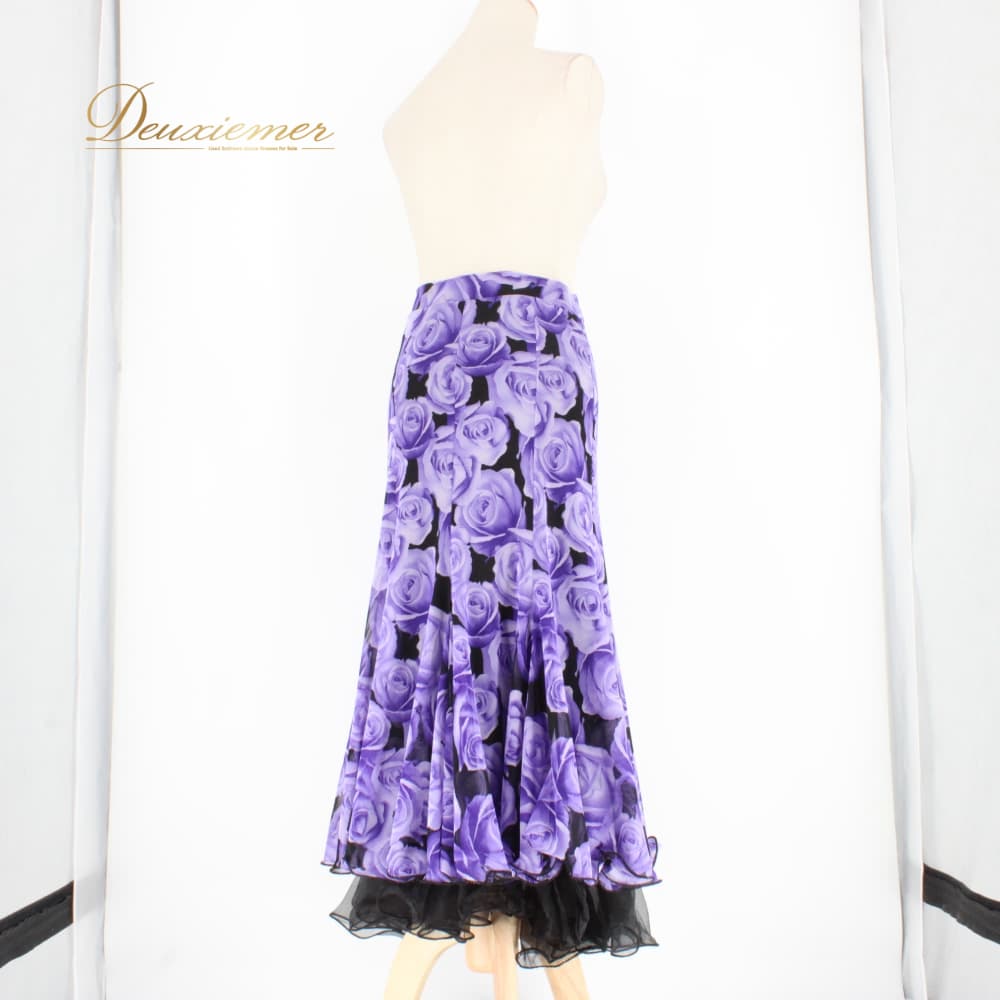 社交ダンス 衣装 ICHIOKU イチオク スカート レッスンウェア ブラック系 パープル系 花柄 薔薇 バラ 紫 黒 練習着 華やか スタンダード ダンス フレアスカート ひらひら チュール風 透け感 ボリューム感 上品 エレガント 花 ローズ柄 ブラックパープル 大人 きれいめ レッスン 競技 練習 ラテン スタンダード兼用 舞台衣装 発表会 ローズ 紫花柄 ダークカラー ラインダンス 衣装用 ステージ衣装 ルンバ タンゴ ワルツ