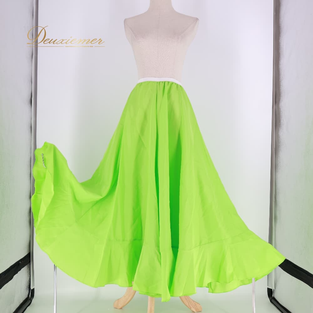 フラメンコ 衣装 スカート グリーン系 ペチコート ファルダ 無地 シンプル 練習 レッスン ボランテ フリル 鮮やか 黄緑 重ね着 ダンス衣装 イベント ステージ 明るい かわいい