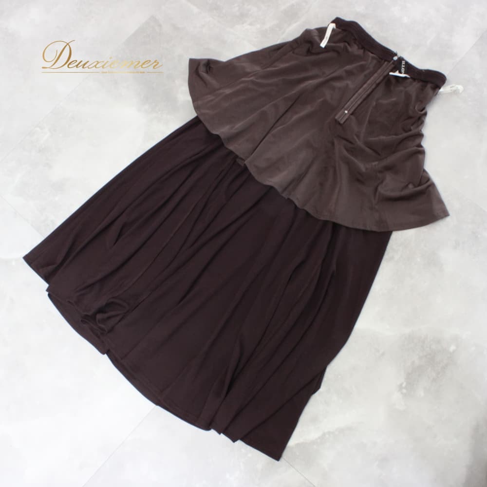 #Papillon #パピヨン #日本製 #レディース #Mサイズ #ダークブラウン #上質 #シンプルコーデ #大人カジュアル #きれいめ #オフィスカジュアル #ウエストファスナー #伸縮性 #ポリエステル #トリアセテート #ファッション #トレンド #秋冬コーデ #スタイルアップ #ENUTSU