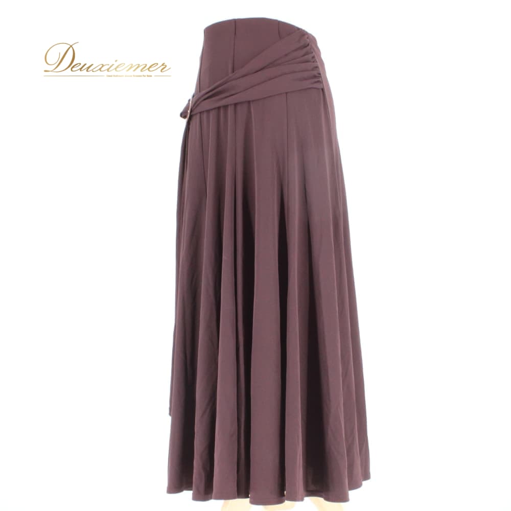 社交ダンス 衣装 Papillon パピヨン スカート レッスンウェア ブラウン系 茶色 ラインストーン フォーマル 練習着 無地 シンプル ロング丈 ダークブラウン系 ラインストーン付き フレアスカート ロングスカート マキシ丈 社交ダンススカート 練習用 レッスン用 演技用 フォーマルウェア パーティー衣装 ダンス衣装 レディース 女性用 上品 大人 エレガント 巻き風デザイン テンション 見映え 試合 コンクール ドレスの一部 コーディネート