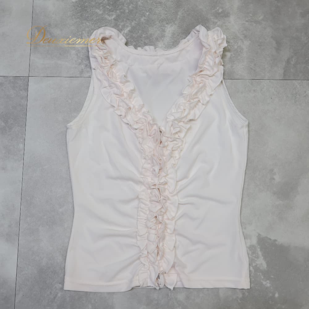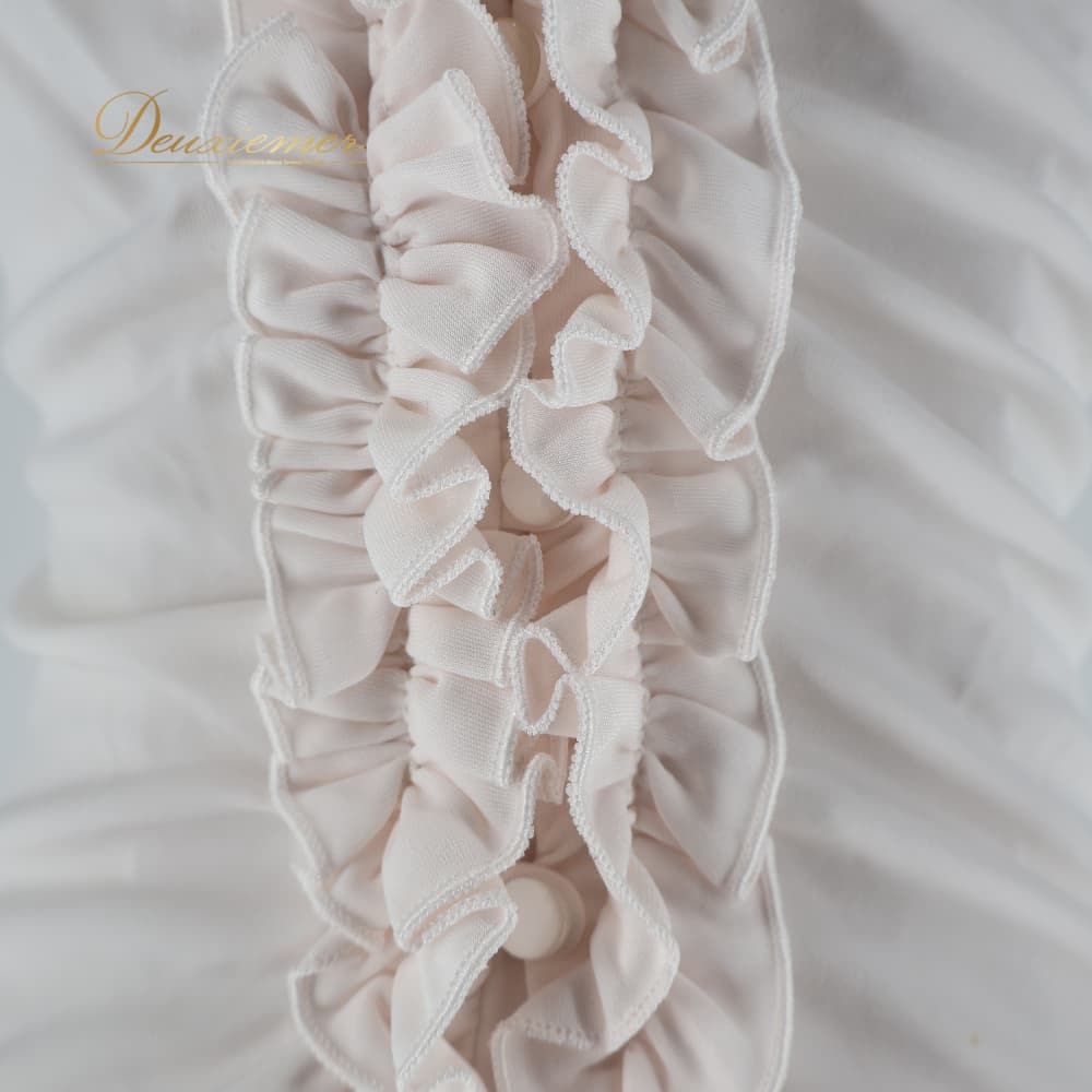 #ICHIOKU #イチオク #薄ピンク #ピンクコーデ #フリル #フリルデザイン #ガーリー #フェミニン #ボタン仕様 #フロントボタン #きれいめ #大人かわいい #春コーデ #夏コーデ #伸縮性あり #ストレッチ #ポリエステル #ポリウレタン #ENUTSU