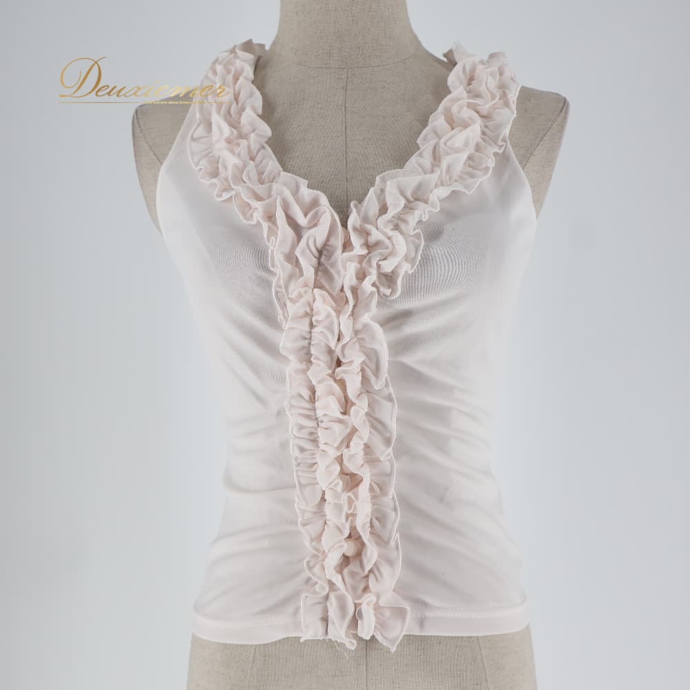 フラメンコ 衣装 ICHIOKU イチオク トップス ブラウス ピンク系 フリル ノースリーブ 袖なし 明るい シンプル かわいい 上品 ボタン 伸縮 ストレッチ ダンス衣装 イベント ステージ ボランテ 薄ピンク