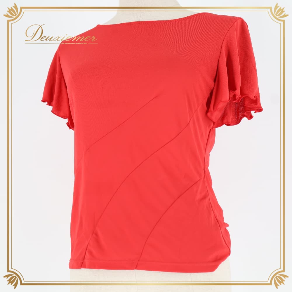 社交ダンス 衣装 Chacott ROYAL DANCE チャコットロイヤルダンス トップス ブラウス カットソー レッスンウェア レッド系 赤 無地 シングル フレア袖 華やか 鮮やか おしゃれ 上品 半袖 フリル袖 きれいめ 大人 エレガント 社交ダンスレッスン 練習着 ダンス衣装 ダンスウェア ステージ衣装 ラテン モダン パーティー コーデ ロゴなし 日本製 レディース レーヨン混 軽やか 動きやすい