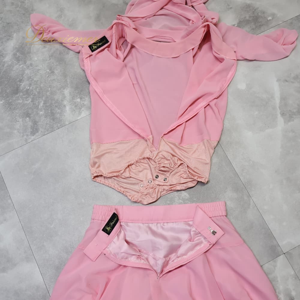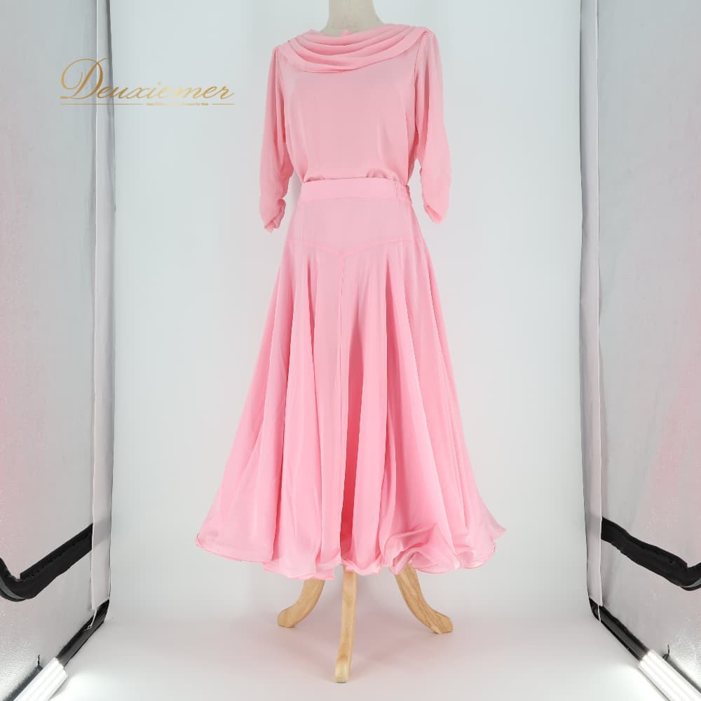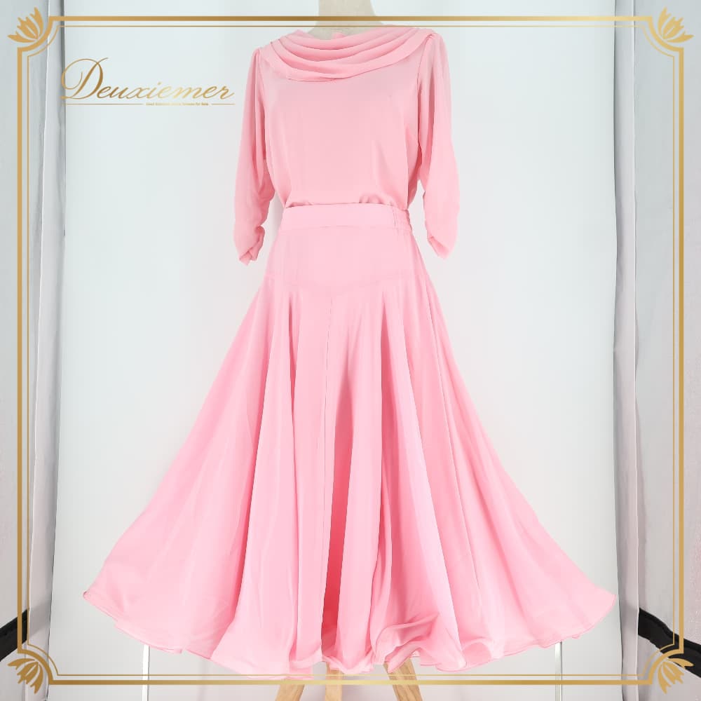 社交ダンス 衣装 Friend ツーピース レッスンウェア ピンク系 上下セット セットアップ 無地 シンプル レオタード かわいい ドレープ 華やか 透け感 ボリューム ダンス衣装 イベント ステージ パーティー