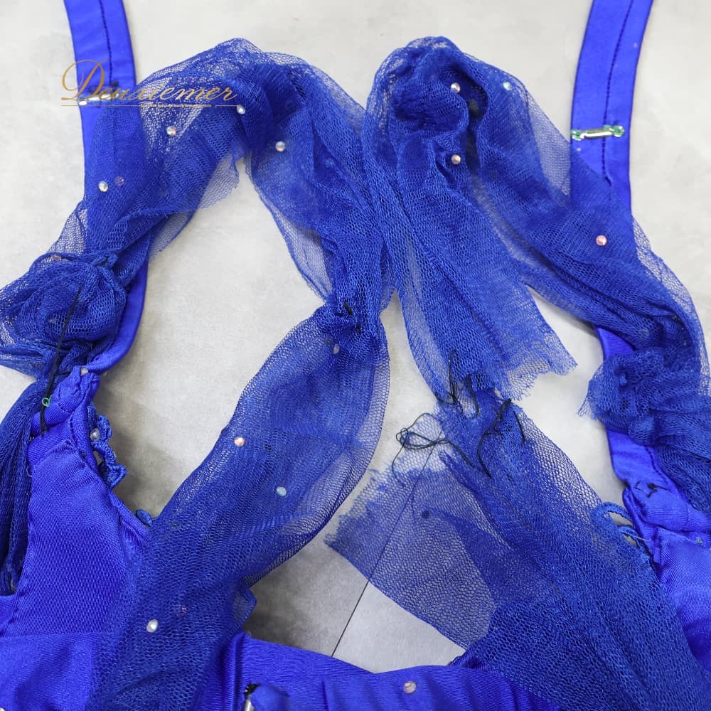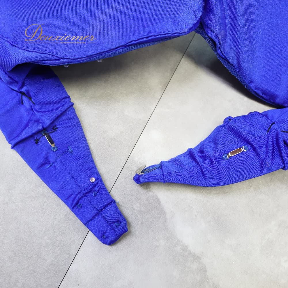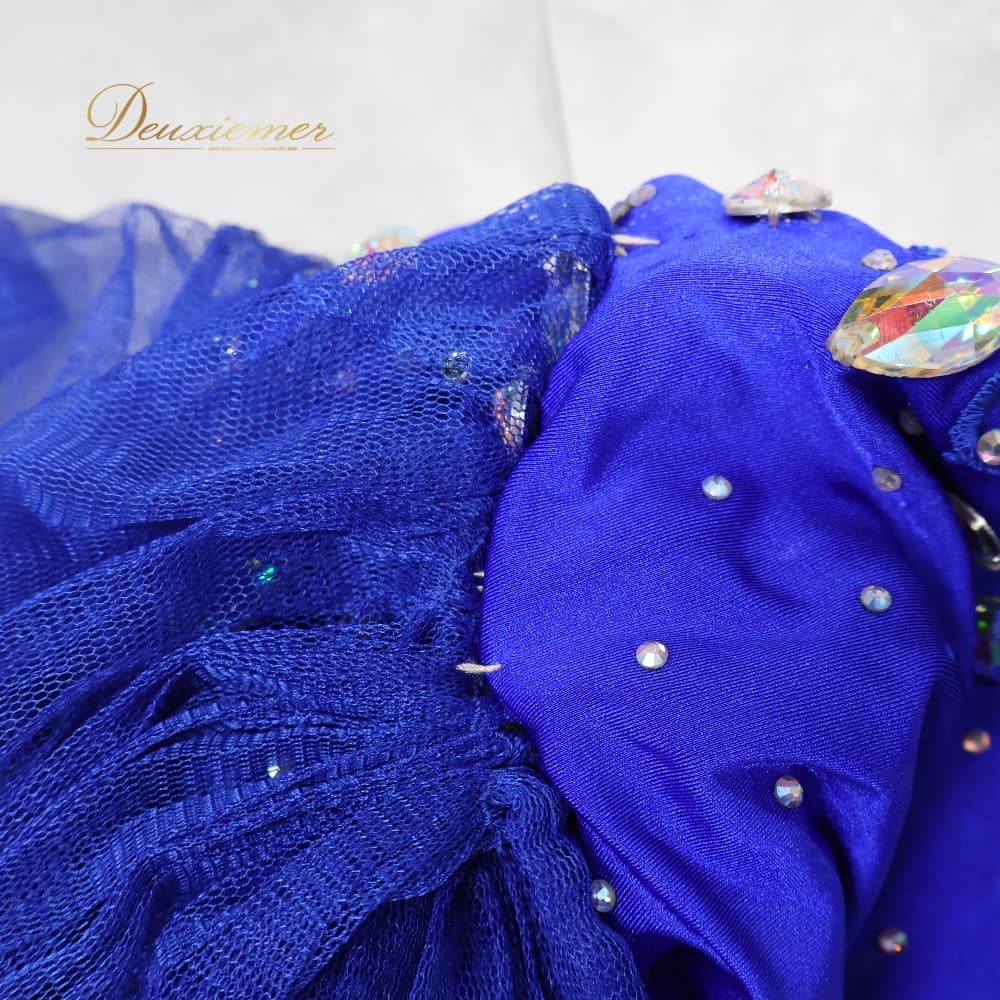 #セットアップ #ブルー #鮮やかブルー #ラインストーン #ラインストーン装飾 #キラキラ #パーティーコーデ #ドレスアップ #お呼ばれ #二次会 #発表会 #ステージ衣装 #映えコーデ #ウエストゴム #スリット #インナーパンツ付き #トップスストラップ #スカート #カラーコーデ #ENUTSU
