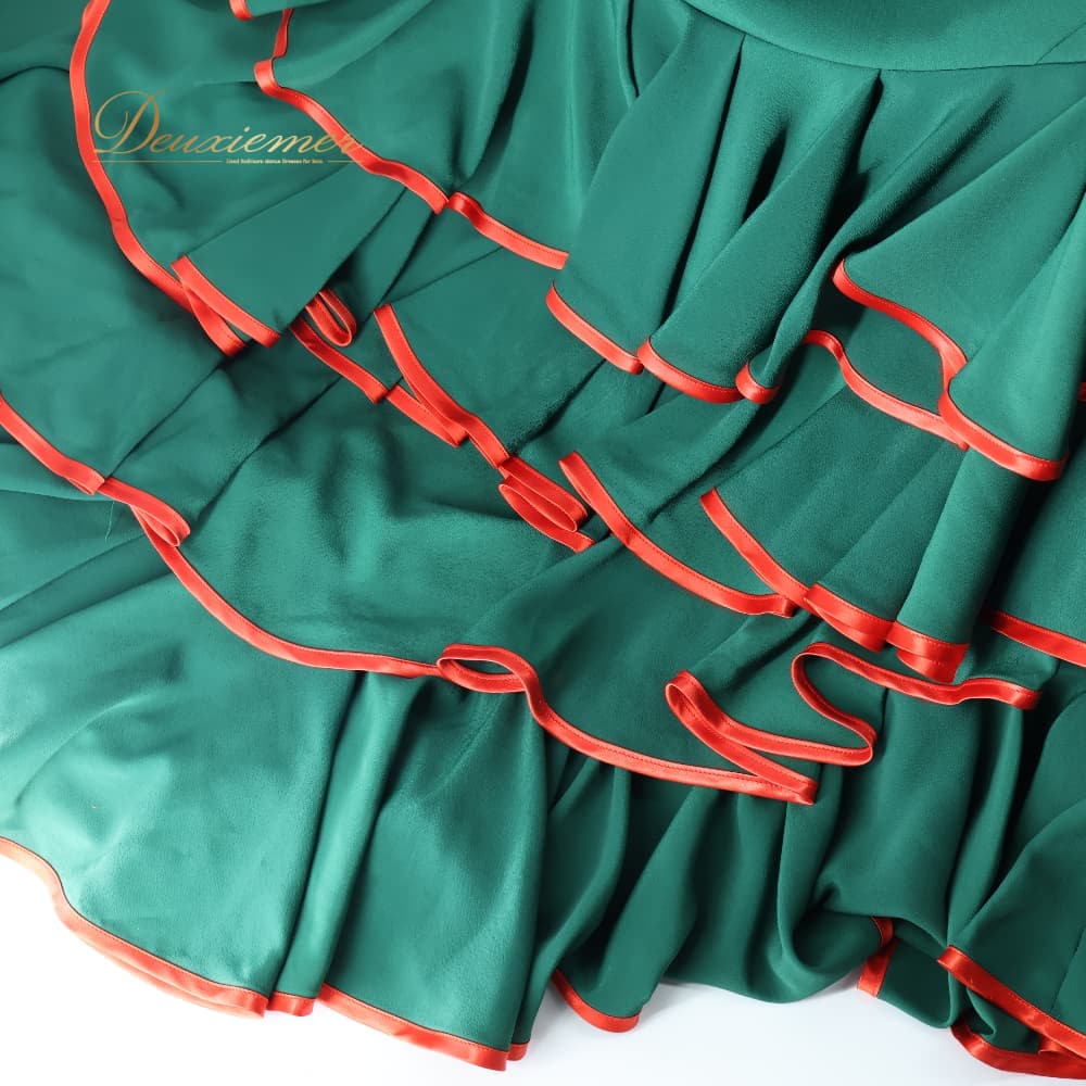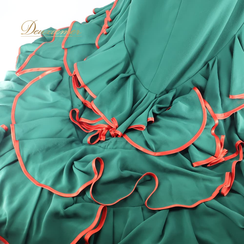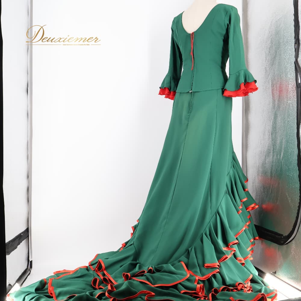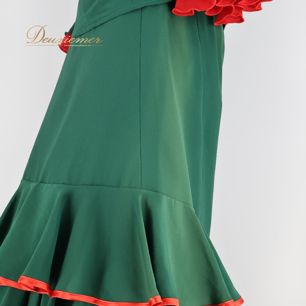 フラメンコ 衣装 MARIA ROSA マリアロサ ツーピース バタデコーラ セットアップ トップス ファルダ スカート 上下セット レッド系 グリーン系 緑 赤 オレンジ ボランテ フリル レース ダンス パーティ 発表会 無地 コスチューム ダンス衣装 演奏会 舞台衣装 ステージ衣装 パーティードレス エレガント