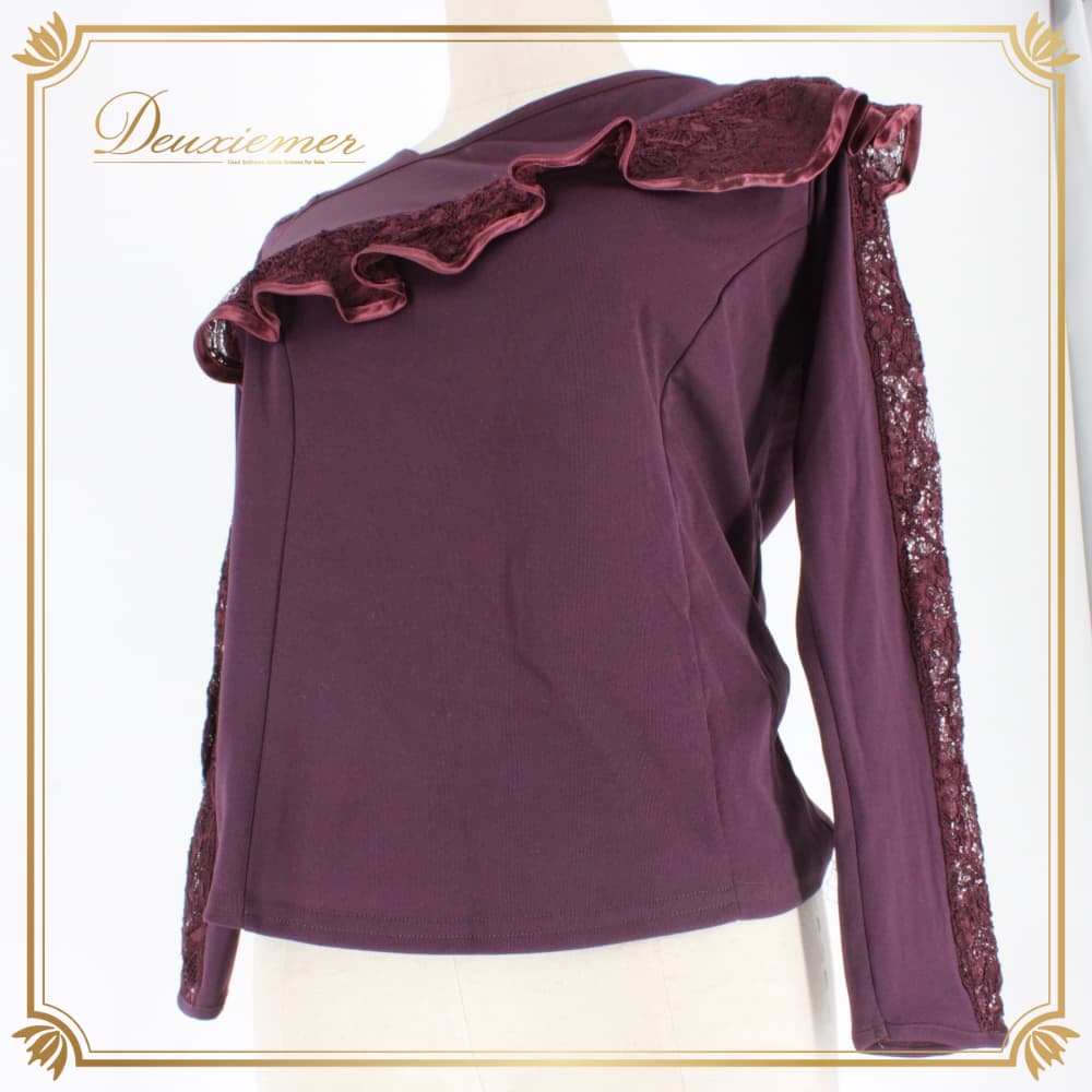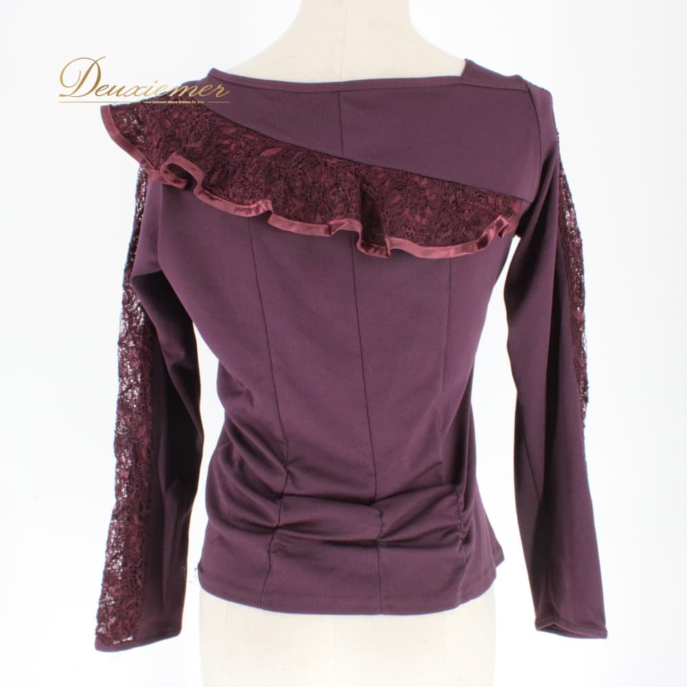 社交ダンス 衣装 Lindo リンド トップス ブラウス レッスンウェア パープル系 紫 レース 練習着 フォーマル 花柄 長袖 シック 紫系 レース袖 練習用 フォーマルウェア ディープパープル 花柄レース シースルー風 レディーズ レディース ステージ衣装 舞台衣装 エレガント 大人 上品 ポリエステル 伸縮性あり カジュアル寄り フィット感 スリム感 スタンダード ダンス レッスン 競技用 dressy Elegant classy
