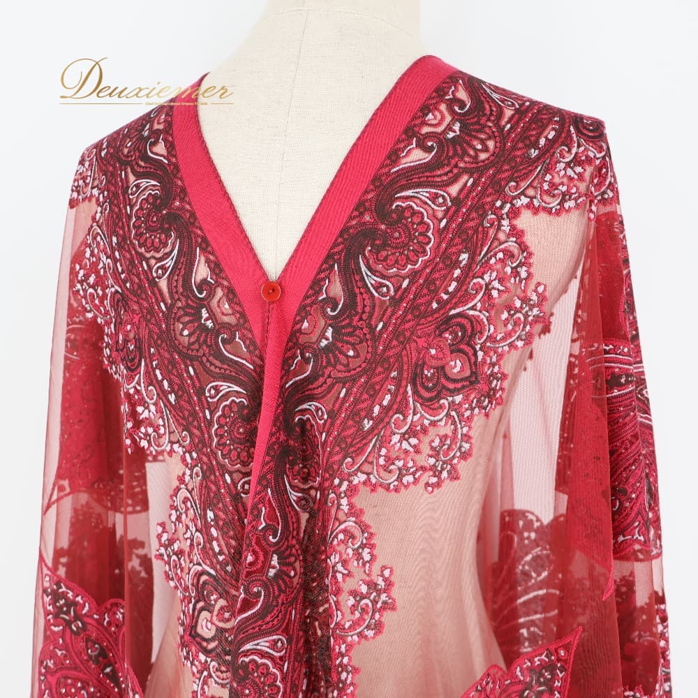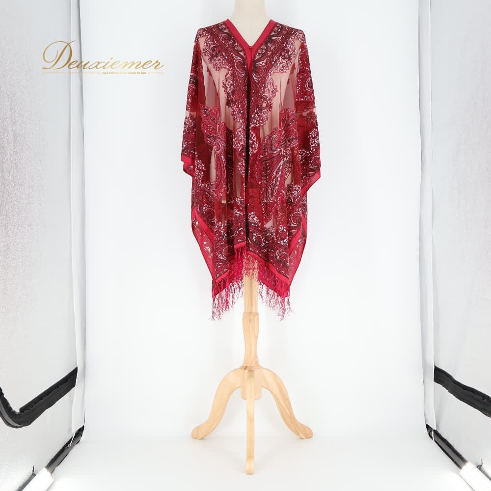 ベリーダンス 衣装 ガラベーヤ レッド系 羽織り ワンピース 赤 白 フリンジ ボタン かわいい 柄 模様 華やか 練習 レッスン イベント ステージ ダンス衣装 おしゃれ 軽い 薄い 透け感 ホワイト系