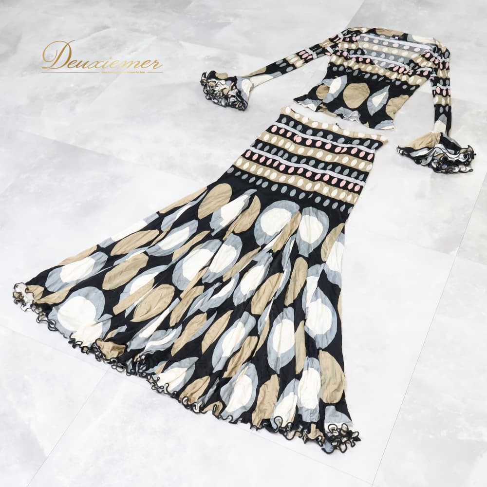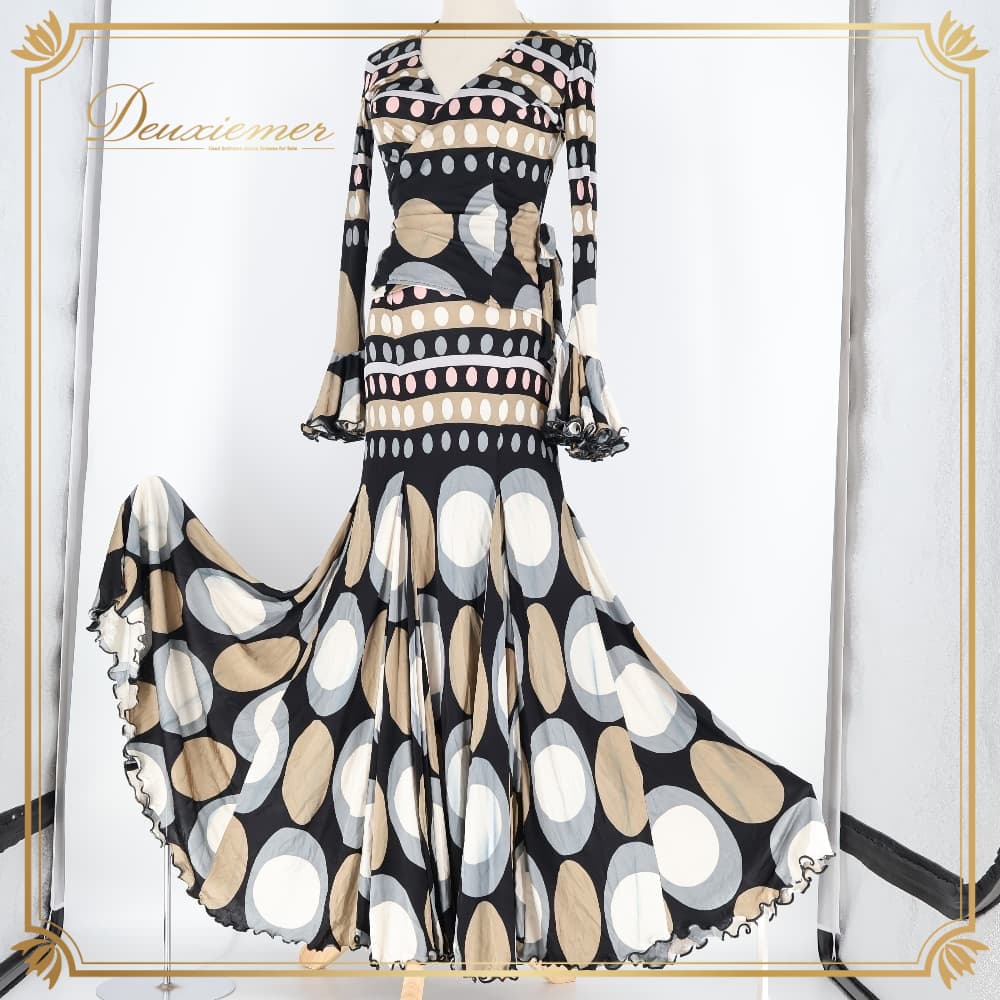 フラメンコ 衣装 pilar vera ツーピース セットアップ 上下セット トップス ブラウス ファルダ スカート ブラック系 ホワイト系 ベージュ系 ブラウン系 黒 ネイビー 青 白 茶色 伸縮 ダンス パーティ 発表会 レッスン 練習着 総柄 個性的