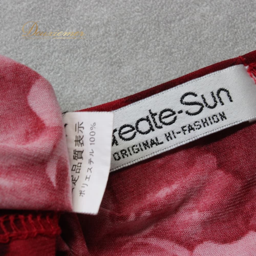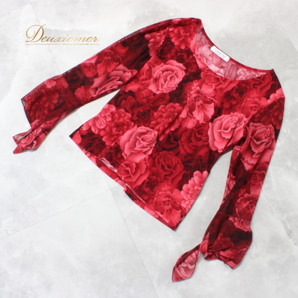 社交ダンス 衣装 create-sun クリエイトサン トップス Tシャツ カットソー レッスンウェア レッド系 ピンク系 練習着 花柄 薔薇 バラ バラ柄 ローズ柄 ランニング風 デザイン プルオーバー 七分袖 長袖風 シースルー袖 透け感 フラワープリント 赤系 伸縮性あり ポリエステル レディース 婦人 ダンス衣装 発表会用 レッスン 発表会 きれいめ 大人 上品 エレガント シック 柄物 女性用 カジュアルドレス風