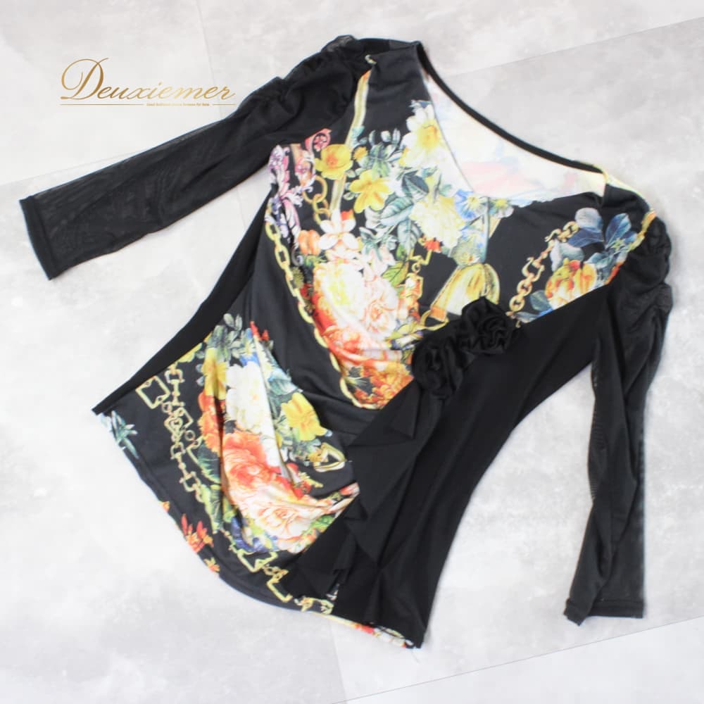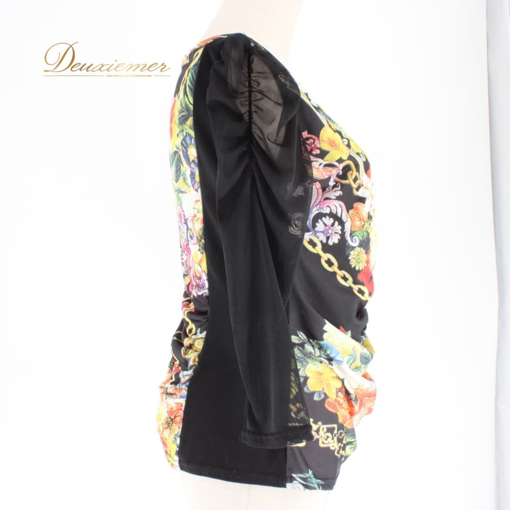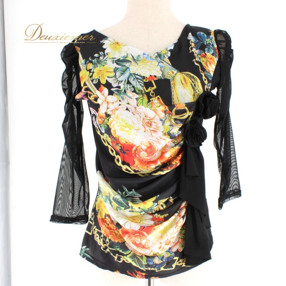 社交ダンス 衣装 ICHIOKU イチオク Tシャツ/カットソー レッスンウェア 練習着 花柄 黒 白 ブラック系 ホワイト系 ピンク系 ブルー系 グリーン系 イエロー系 オレンジ系 花柄トップス 黒トップス ブラック フラワー柄 カラフル 花 バラ柄 ローズ柄 カットソー 長袖 ブラックレース袖 レース 透け感 体型カバー レッスン 競技 練習 ダンスウェア レディース 女性 ダンス レディス ストレッチ素材 ポリエステル フィット感 ラウンドネック クラシック ダンス衣装 上着 ウエア ローズプリント