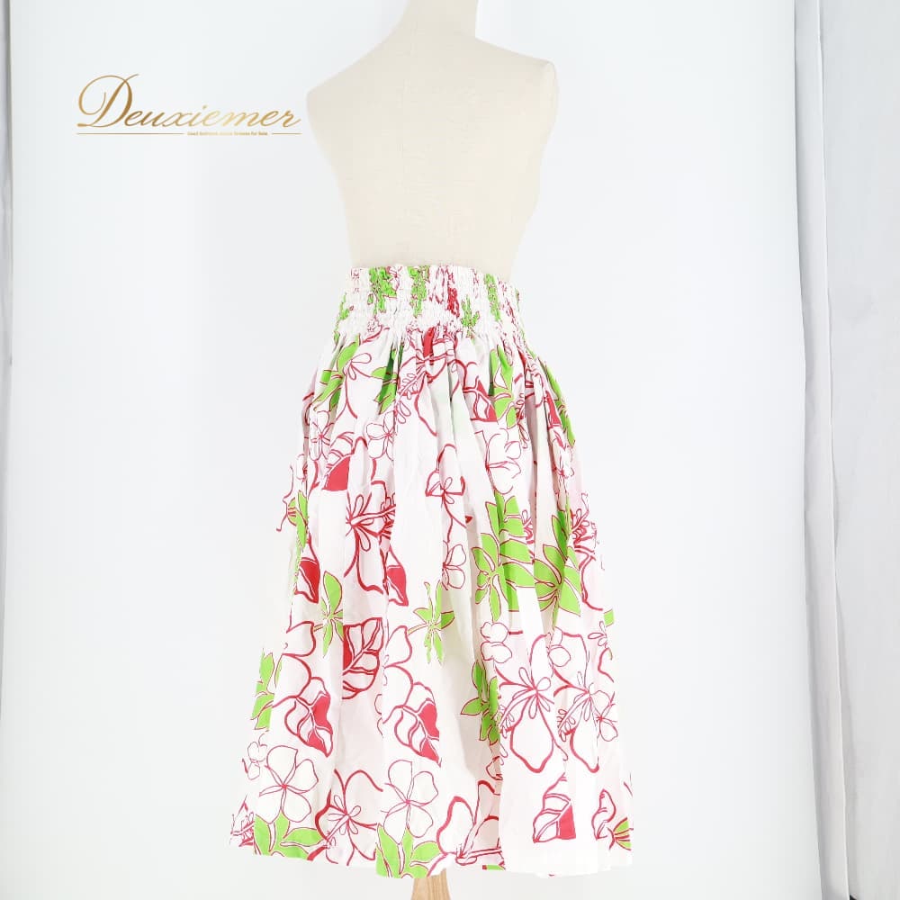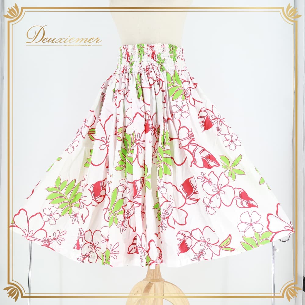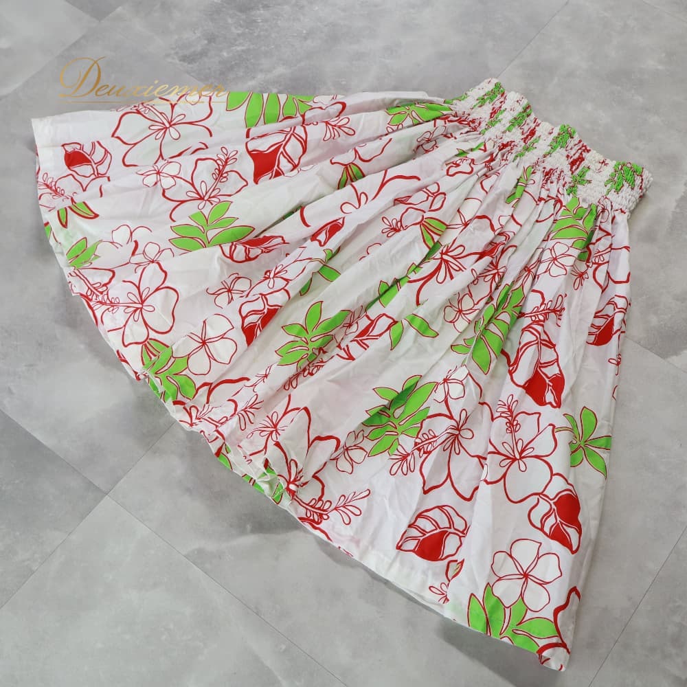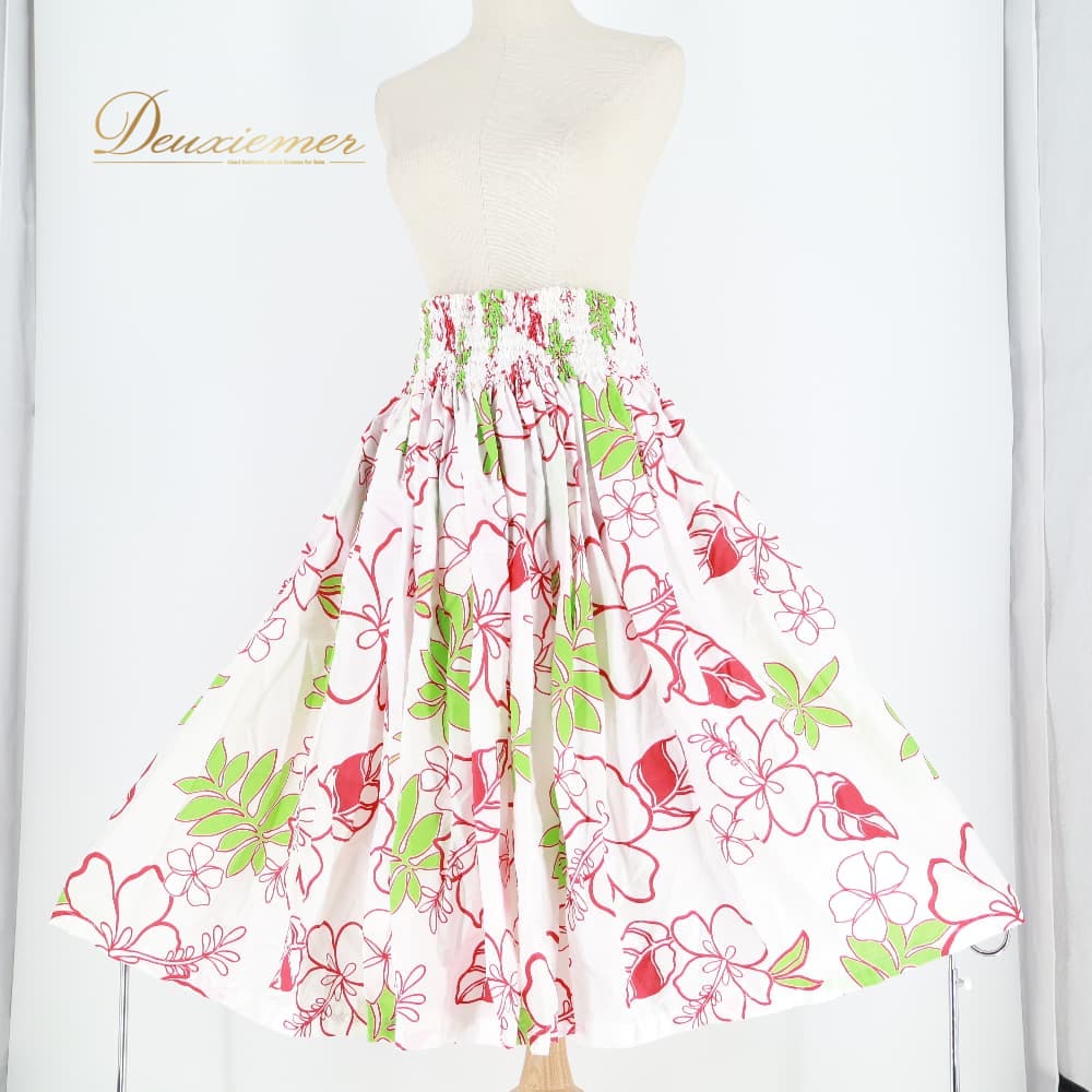 フラダンス 衣装 パウスカート ホワイト系 ハイビスカス柄 プルメリア柄 ハワイアンプリント 白 アロハ フラ ダンス レッスン 練習 植物柄 花柄 レッド系 グリーン系 赤 黄緑 シングル スカート 華やか 鮮やか かわいい おしゃれ 上品 ふんわり 軽やか フレア 練習用 レッスン用 レディース 体型カバー ふんわりスカート 透けにくい かわいい柄 目立つ柄 ハワイアン 祭り 文化イベント 白レッド系 花柄スカート 赤系 黄緑系 ティアレ風柄 フレアスカート リゾート風 ゴムウエスト バンド付き