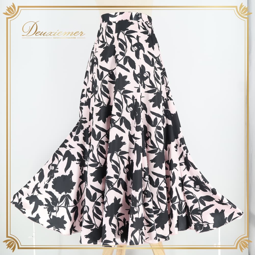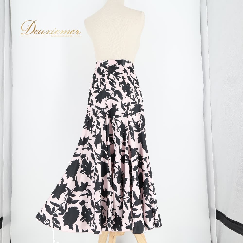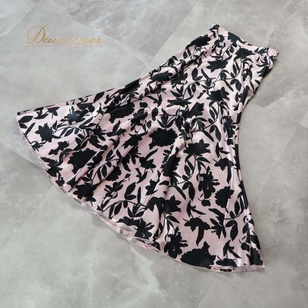 社交ダンス 衣装 白樺ドレス スカート レッスンウェア ピンク系 日本製 花柄 植物柄 ハワイアンプリント 薄ピンク サテン生地 黒 ブラック系 光沢感 高級感 華やか おしゃれ かわいい 上品 軽やか ピンクブラック スカート丈 ひらひら フレアスカート 総柄 花模様 ボタニカル柄 リーフ柄 ハワイアン柄 大人かわいい 華やかドレス 光沢サテン 生地 ドレススカート ダンスウェア 練習用 本番用 発表会用 ダンスレッスン 競技 ダンス女子 衣装コーデ コーデ映え エレガント クラシカル きれいめ
