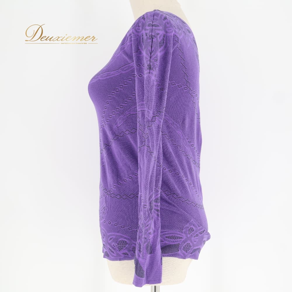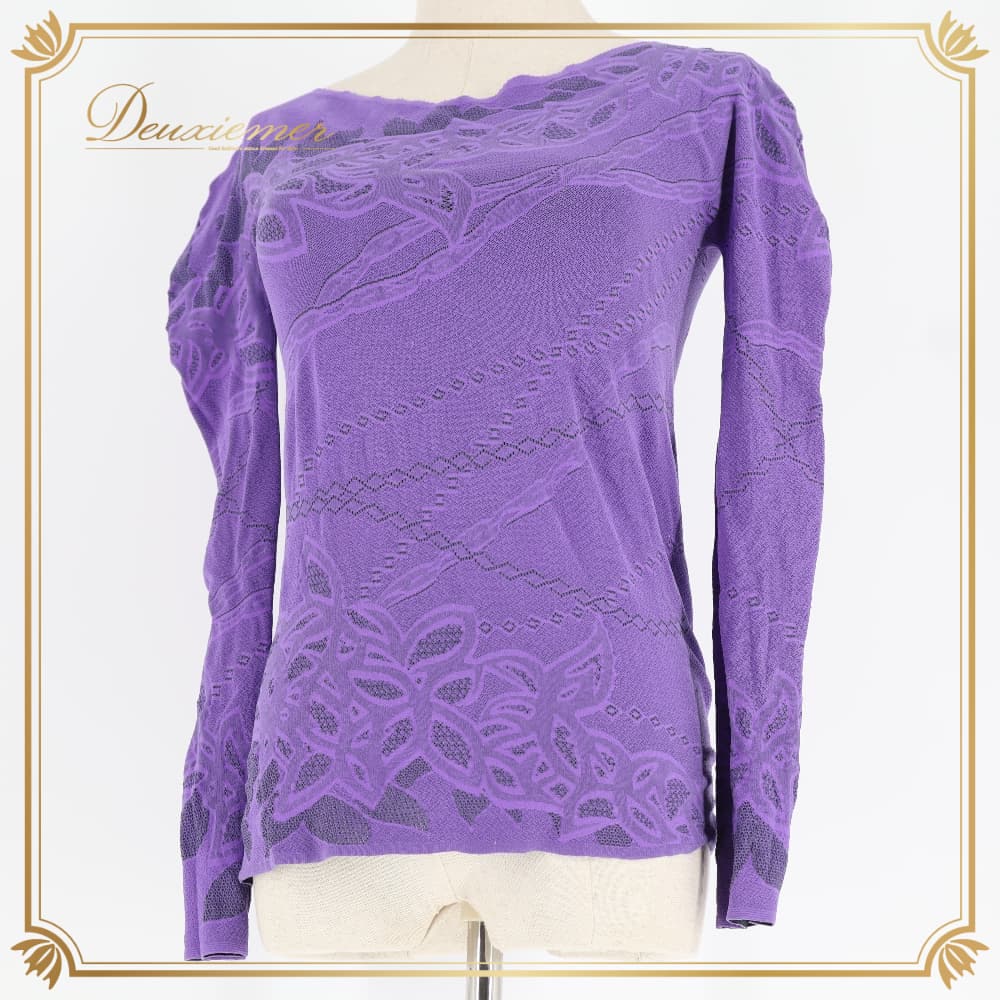 バレエダンス 衣装 ノーソーイングニット レッスンウェア パープル系 リバーシブル 紫 灰色 グレイ系 レッスン 練習 かわいい おしゃれ 上品 大人っぽい ストレッチ ノーソーイング 華やか 社交ダンス ノースリーブ風 長袖 透け感風 エレガント デザインニット風 編み柄風 模様入り レース調 フラワー風 幾何学風 リバーシブルトップス ニット風 トップス ダンスレッスン 体操 バレエ用 春秋向け お稽古 大人レディ きれいめ カジュアル可 クラシック フィット感 伸びる素材 レッスン着 女性用 婦人用