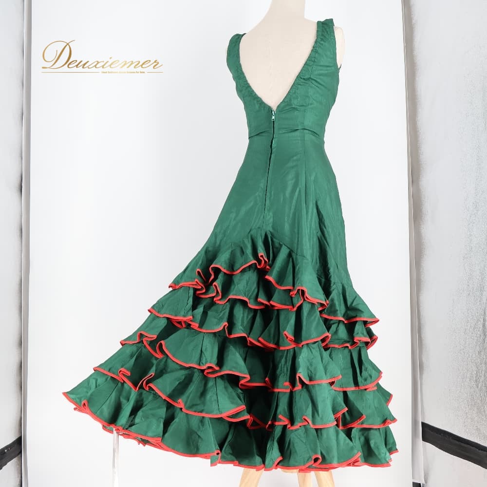 フラメンコ 衣装 ドレス ワンピース レッド系 グリーン系 緑 赤 ボランテ フリル 無地 ダンス パーティ 発表会 レトロ 可愛い ノースリーブ 舞台衣装 ダンス衣装 発表会用 フェミニン